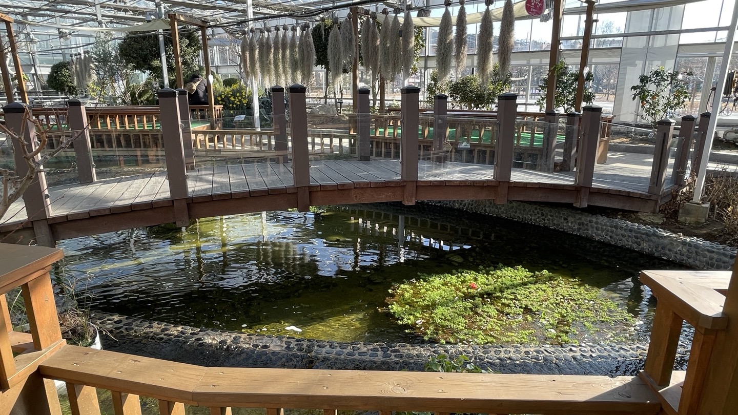 연못에 비단잉이들이 노닐고 있어서 구경하는 재미가 있습니다. 아쉽게도 연못 물관리는 그닥 좋아보이지는 않네요;;