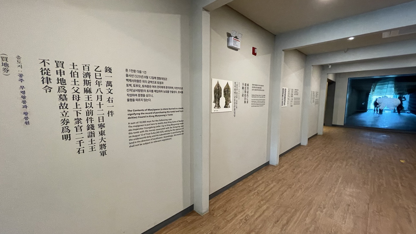 무령왕릉 모형전시관 모습입니다. 무령왕릉이 발견 되었을 당시의 모습과 유물들이 전시되어 있습니다.