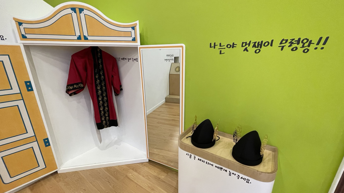 추천연령이 유아 및 초등저학년이다 보니 전시물들은 만져보고 그려보고 맞춰보고 하는 체험형 전시들로 이루어져 있습니다. 무령왕 옷도 입어보고 신발도 신어보고, 게임형태의 체험물들과 그림그리는 활동 등을 할 수 있어서 추천연령에 있는 아동들은 재미있는 시간 보낼 수 있을 것 같아요.