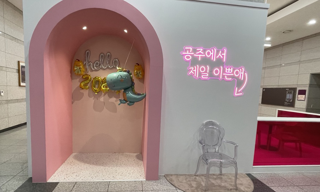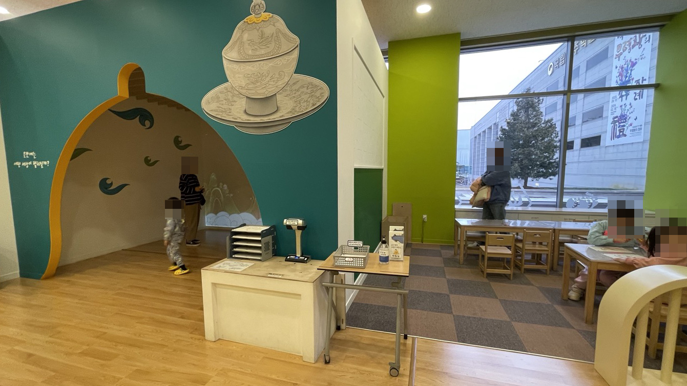 웅진백제 어린이 체험실 입구 앞으로는 포토존과 휴게시설이 마련되어 있어요.
