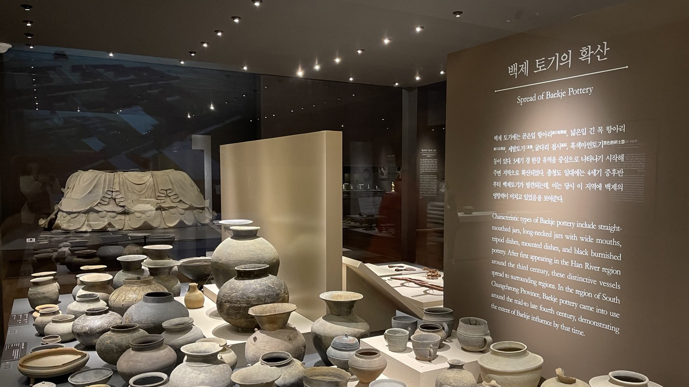 무령왕릉에서 출토된 다양한 유물들과 제사행사에서 쓰였던 그릇들이 전시되어 있습니다.
