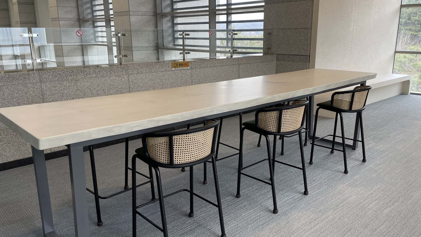 상설전시관 2층에는 넓은 테이블들이 있는 휴게공간들이 있어요.
