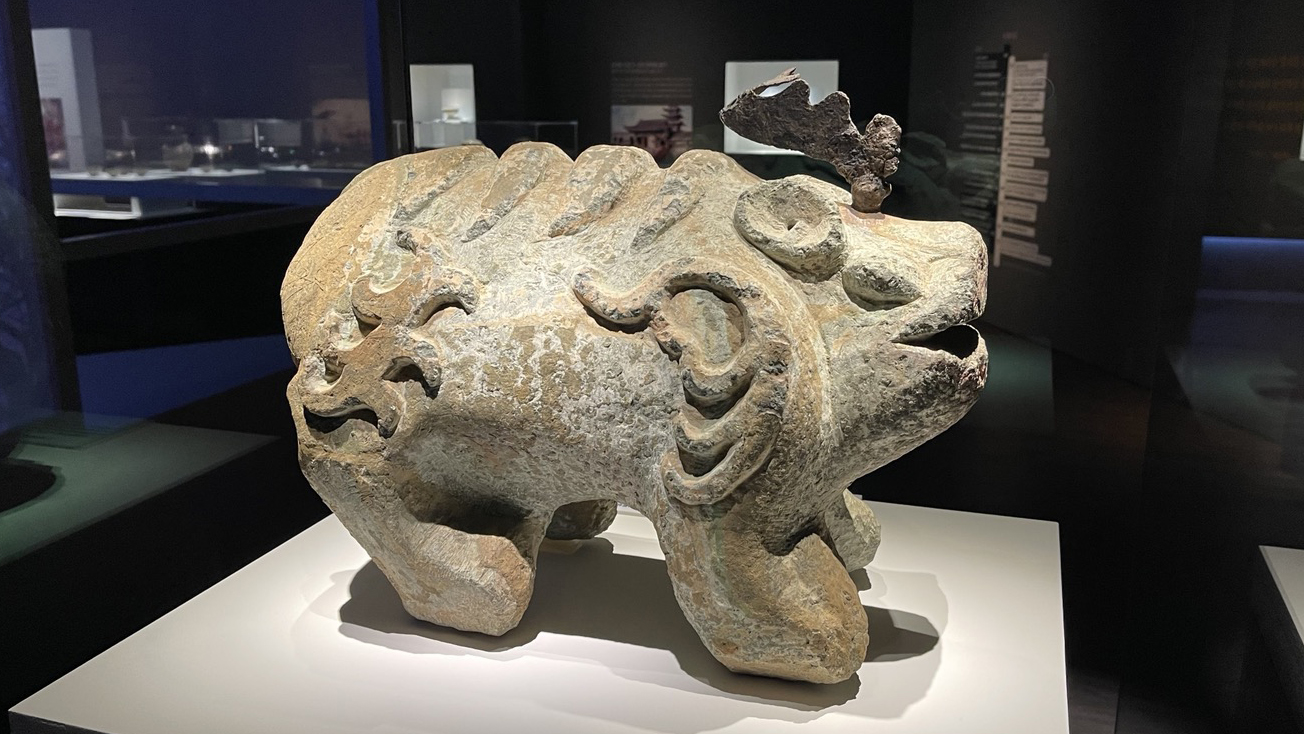 입술에 귀신을 물리친다는 의미로 붉은색의 진사(수은으로 이루어진 황화 광물)가 칠해져 있고, 오른쪽 뒷 다리는 의도적으로 깨뜨린 것처럼 부러진 채 발견되었습니다. 일부러 뒷다리를 깨뜨린 이유로 '진묘수가 도망가지 않고 무덤을 잘 지킬 수 있도록 하기 위한 것'이라는 해석이 있습니다. 이러한 방식은 중국에서 진묘수를 제작해 넣을 때 으레 하는 전통이라고 하네요.