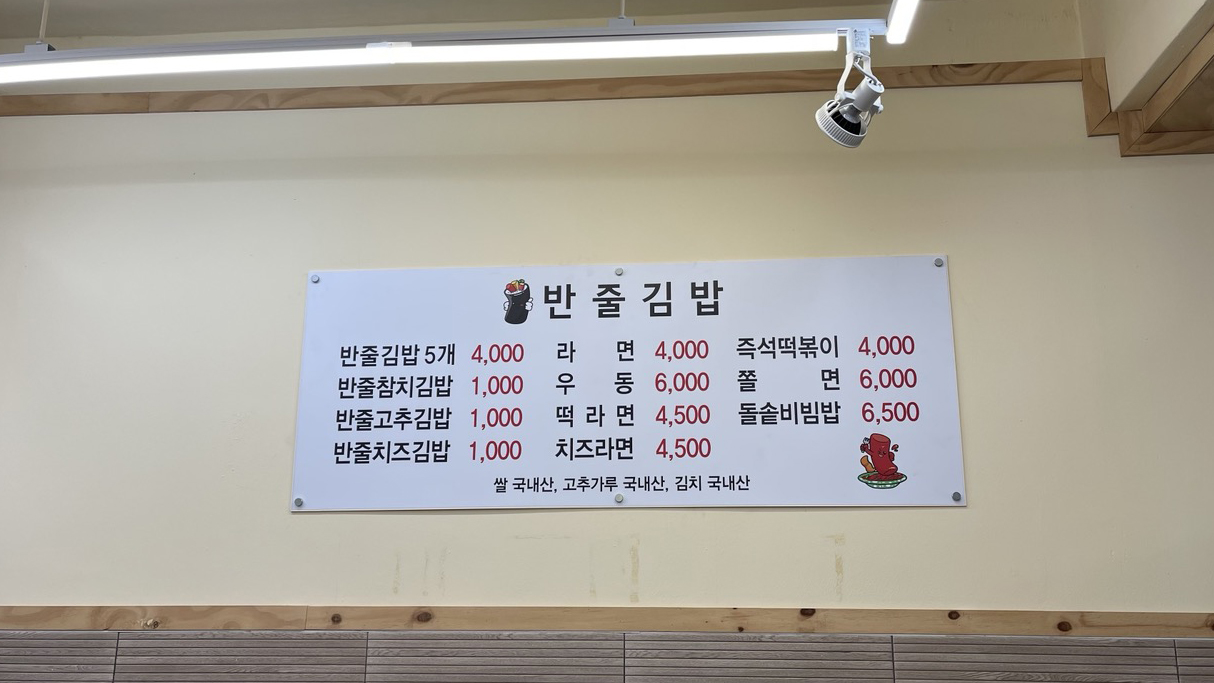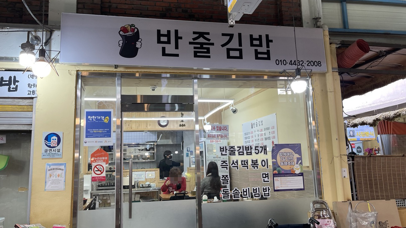 반줄김밥이라는 분식집인데요. 오래된 시장 안에 있는 분식집이지만, 인테리어를 새로 했는지 실내는 오래된 느낌이 전혀 없었습니다.