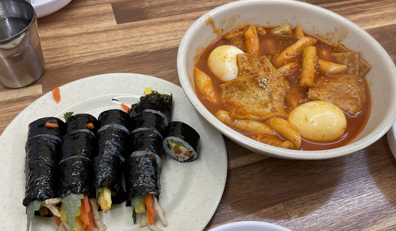 반줄김밥은 김 1장을 2등분해서 작게 만든 꼬마 김밥 같은거에요. 5줄이지만 양으로 치면 일반 김밥 1줄 정되 되는 양입니다. 떡볶기도 2인분이지만 양이 좀 적게 느껴져서 나중에 1인분 더 추가했어요. 그런데도 살짝 부족한 느낌?