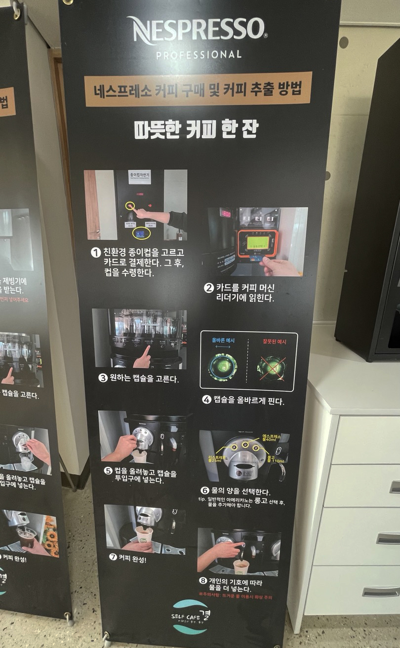 빨대, 뚜껑, 컵홀더 등은 종이컵자판기 아래에 있는 서랍을 열면 있습니다.