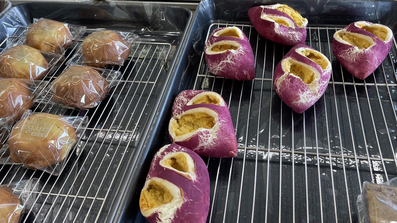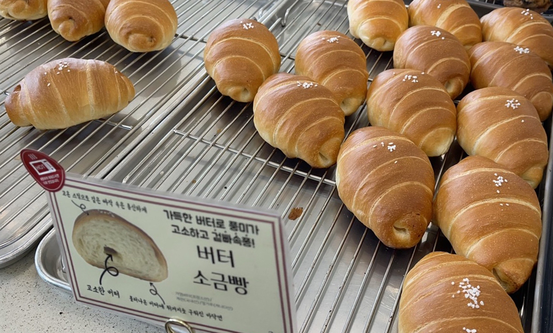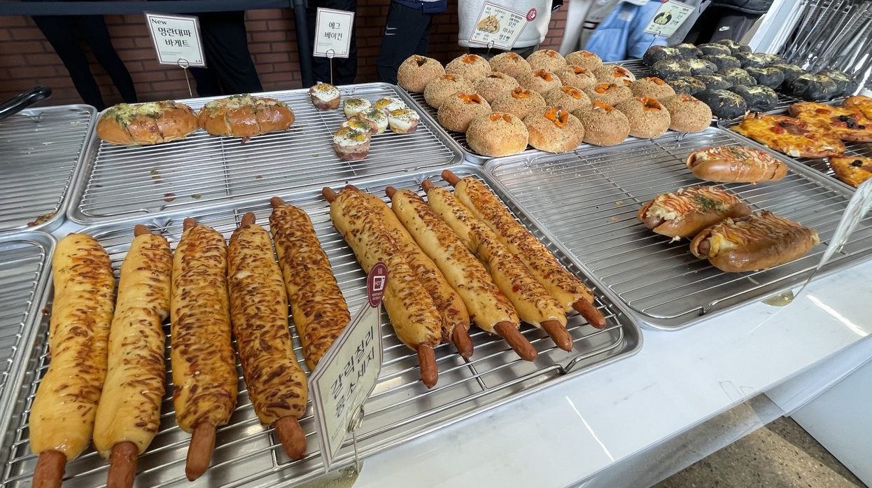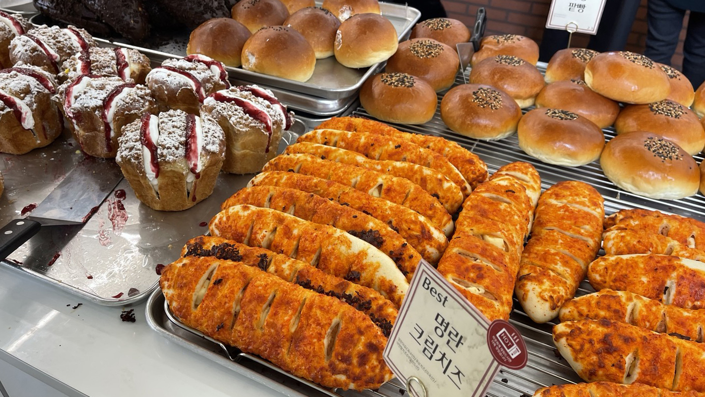 다양한 빵이 진열되어 있습니다.