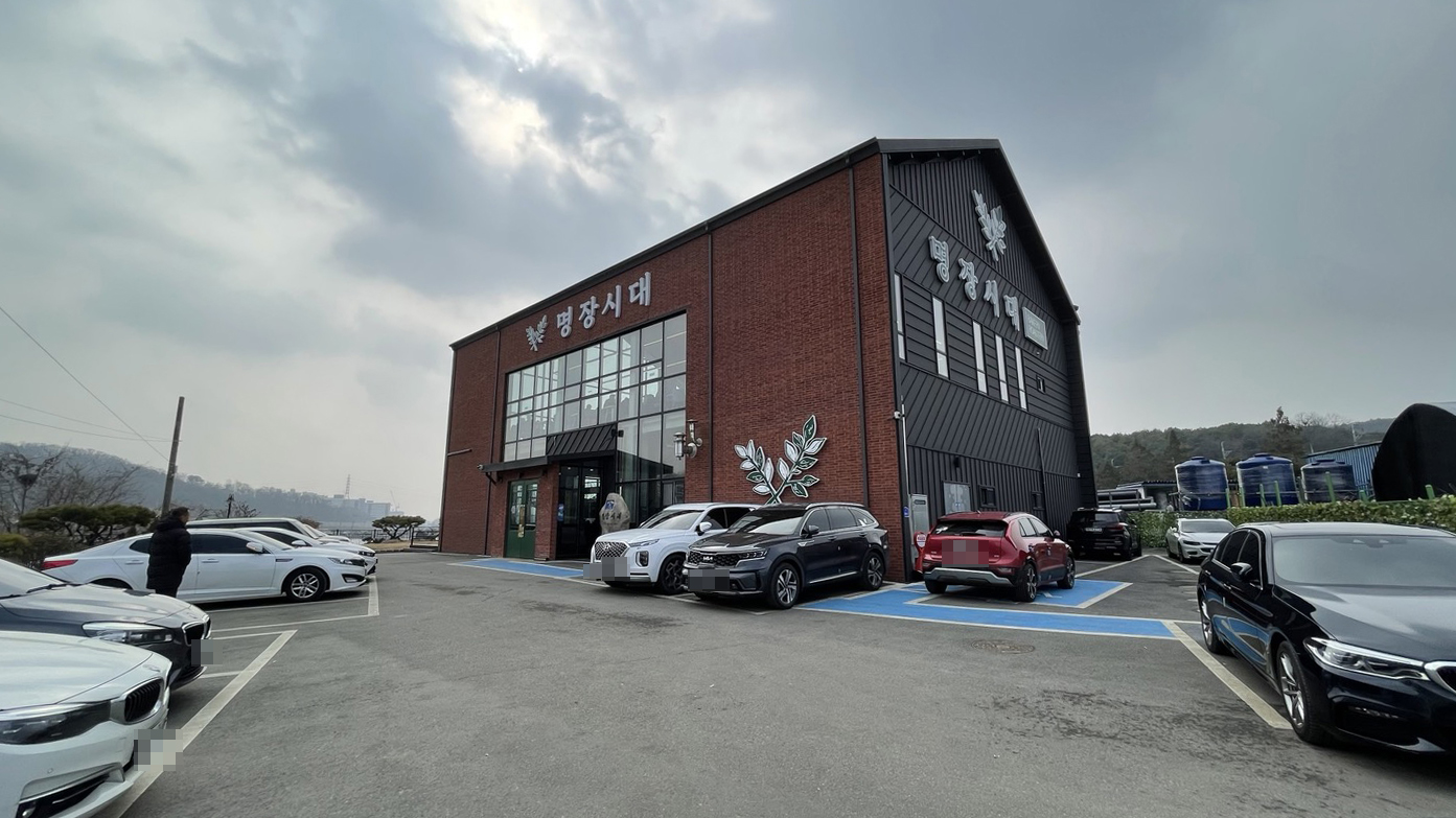 명장시대 오산점 외관 모습입니다. 2층의 층고가 높은 건물이에요.