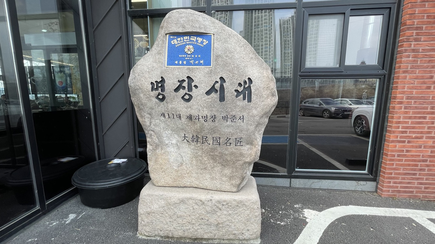 베이커리카페 입구에 대한민국명장 '제 11대 제과명장 박준서'라고 세겨진 안내석이 세워져 있습니다.