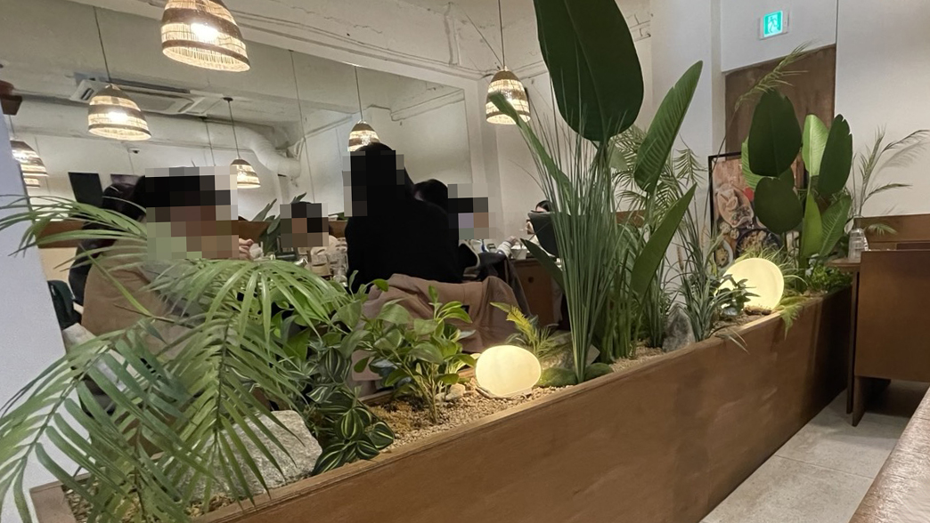 매장은 그리 넓지 않아요. 테이블간 간격도 좁은 편이고요.