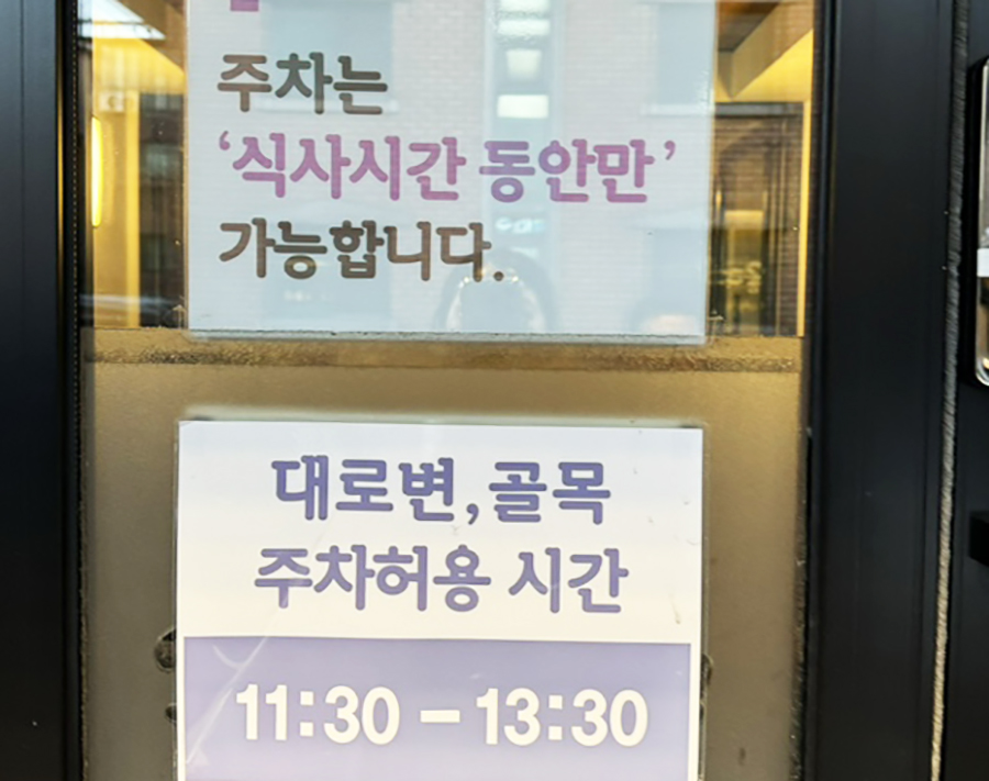 주차장은 매장 바로 앞에도 있고 길 건너편에도 굴토리전용주차장이 있어서 괜찮은 편입니다. 그리고 점심시간인 11:30~13:30까지는 대로변과 골목에 주차가 가능합니다.