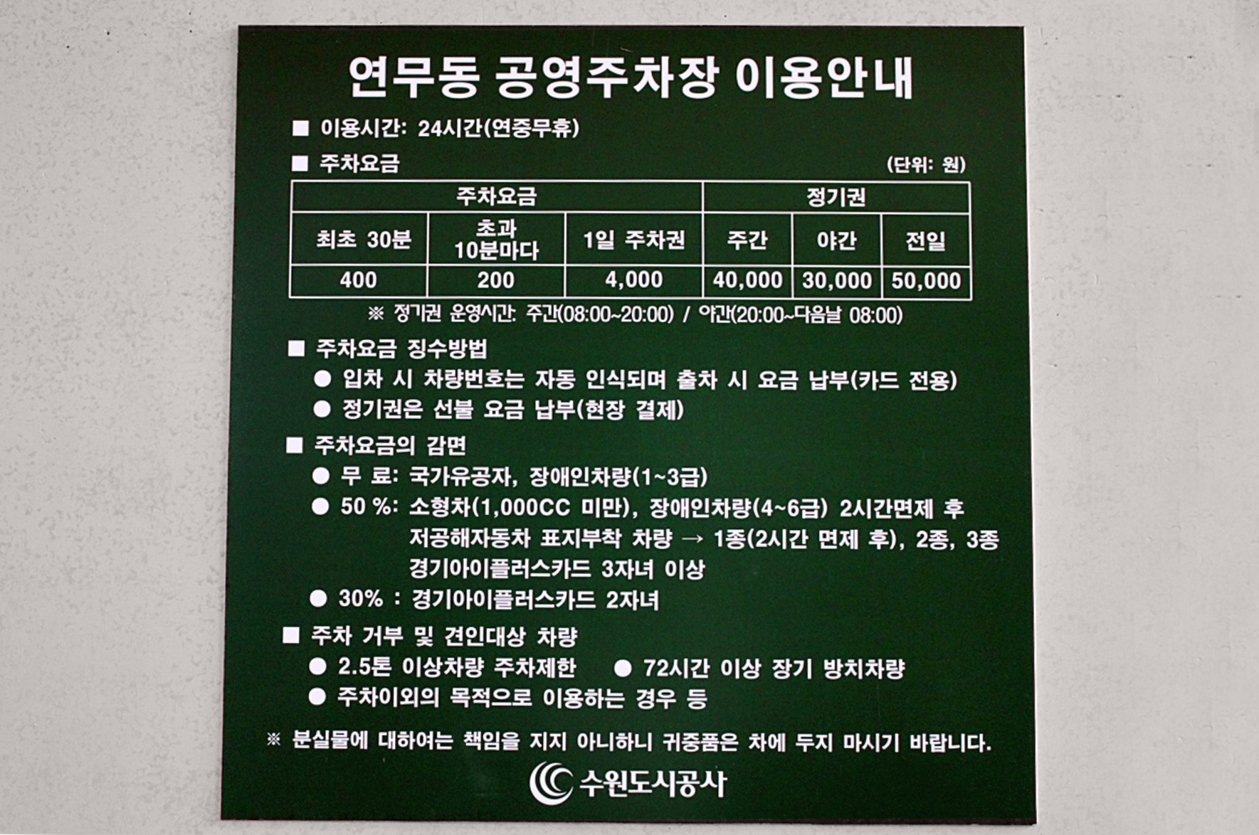수원화성 동암문 근처에 있는 연무동공영주차장에 주차를 했습니다.