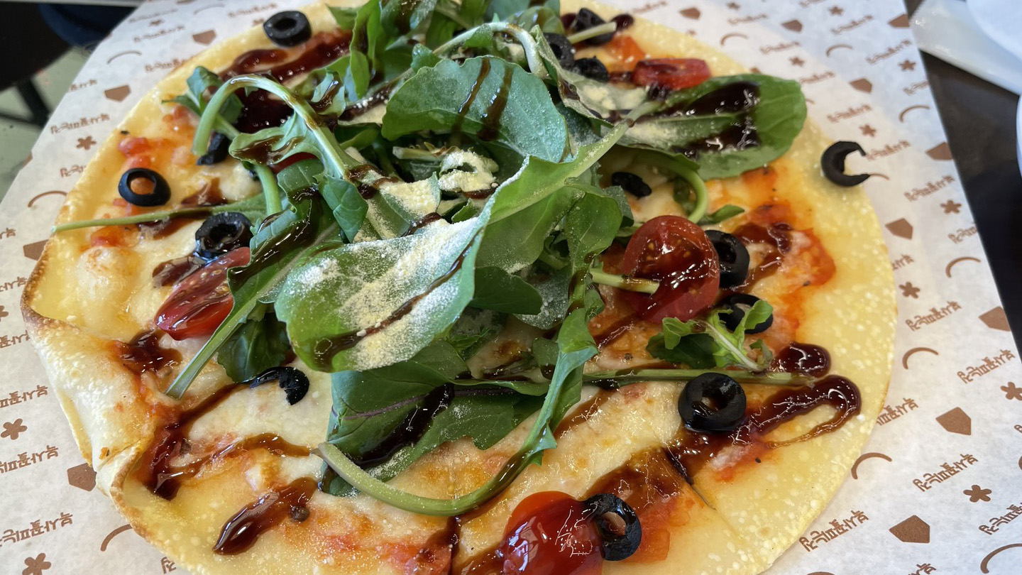 서비스로 나오는 화덕피자에요. 채소가 듬뿍 올려져 있어 상큼하니 맛있었어요.