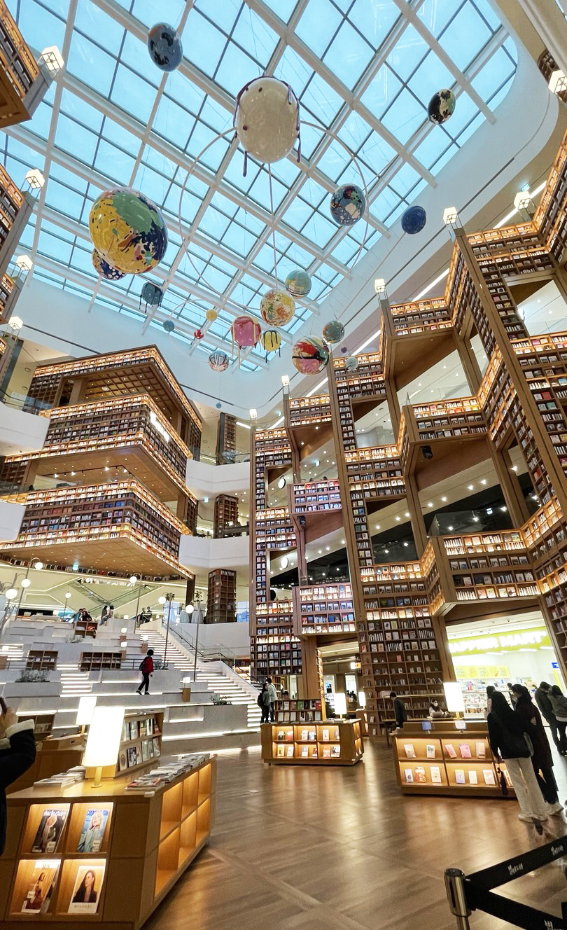 - 압도적인 규모 : 4층부터 7층까지 이어지는 22m 높이의 책장과 개방형 공간 구성