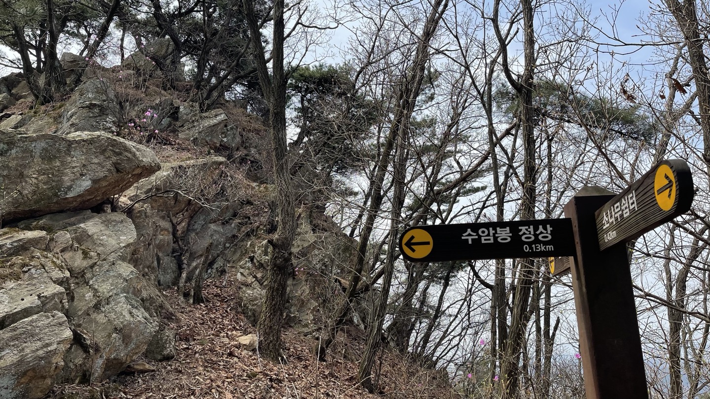 이정표를 보고 수암봉 정상 방향으로만 가면 됩니다.
