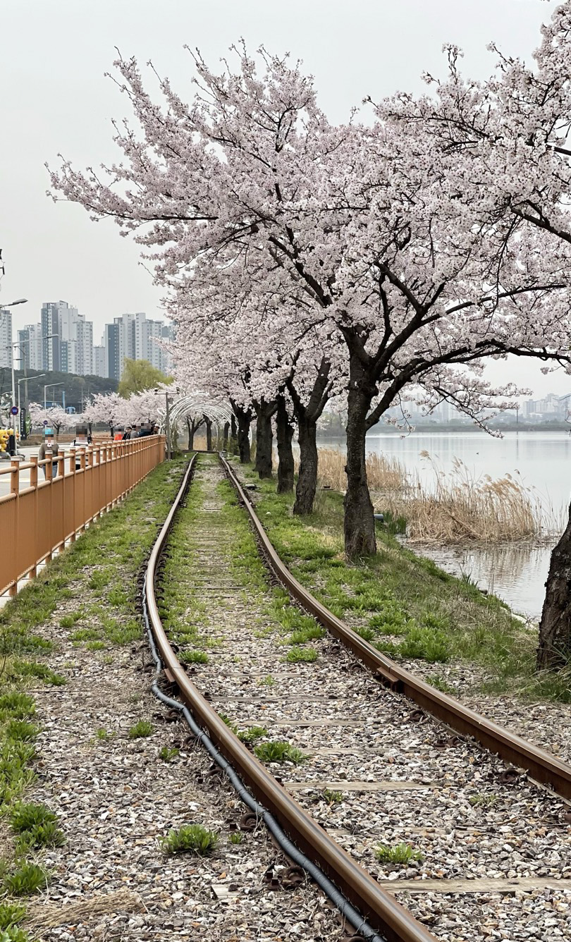 철길을 타라 활짝 피어있는 벚꽃이 너무 운치 있죠?^^