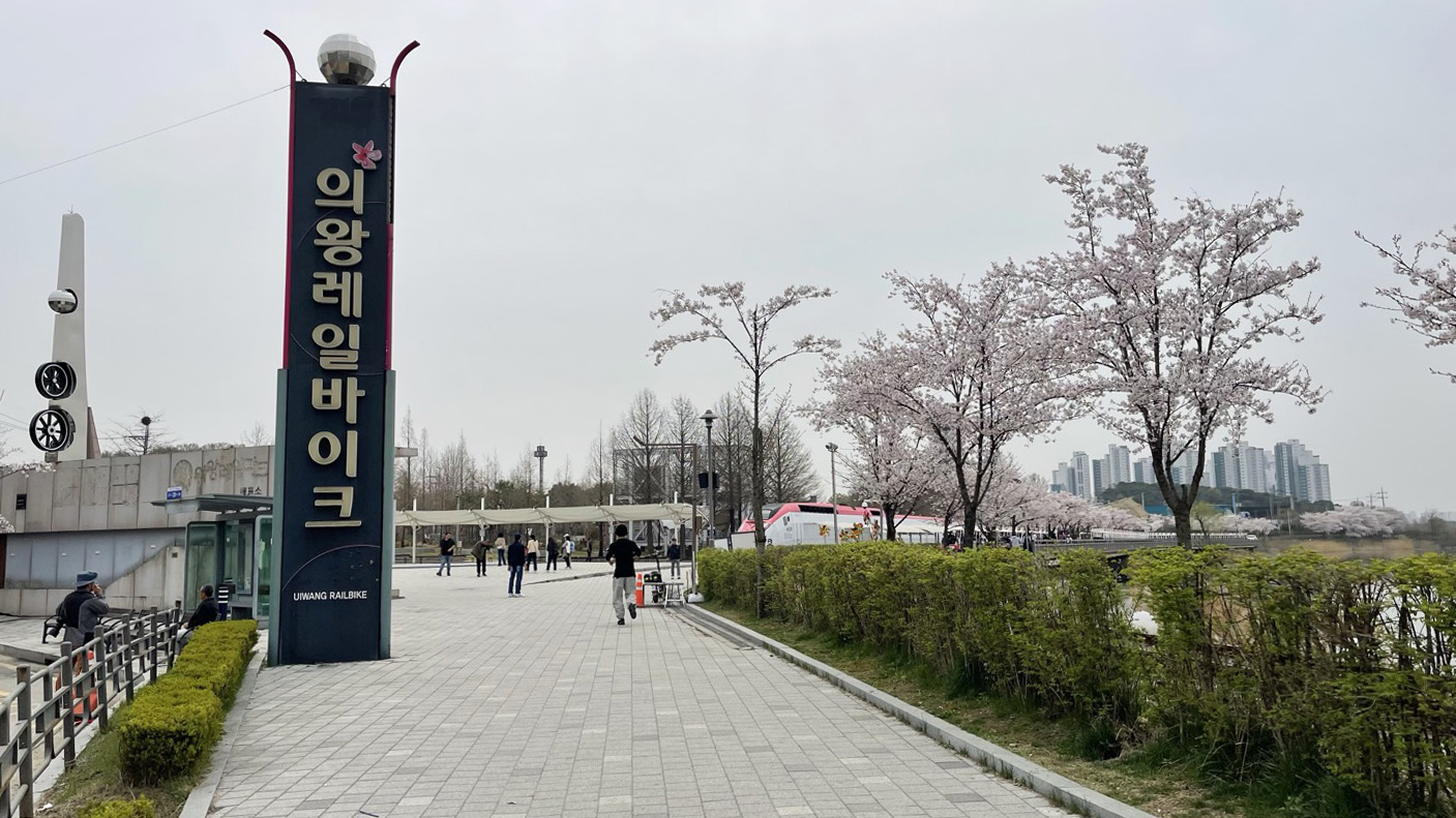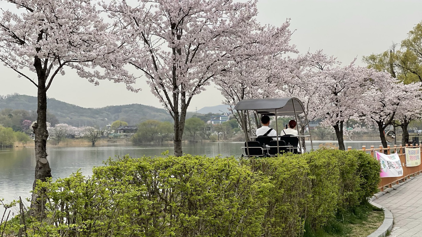 2024년 4월 8일, 의왕 왕송호수 둘레길 벚꽃 개화 상태입니다.