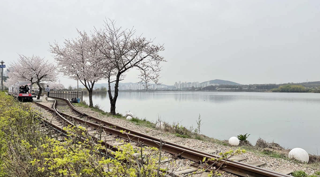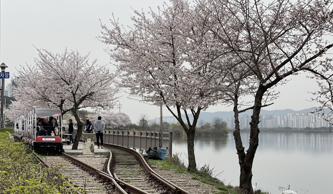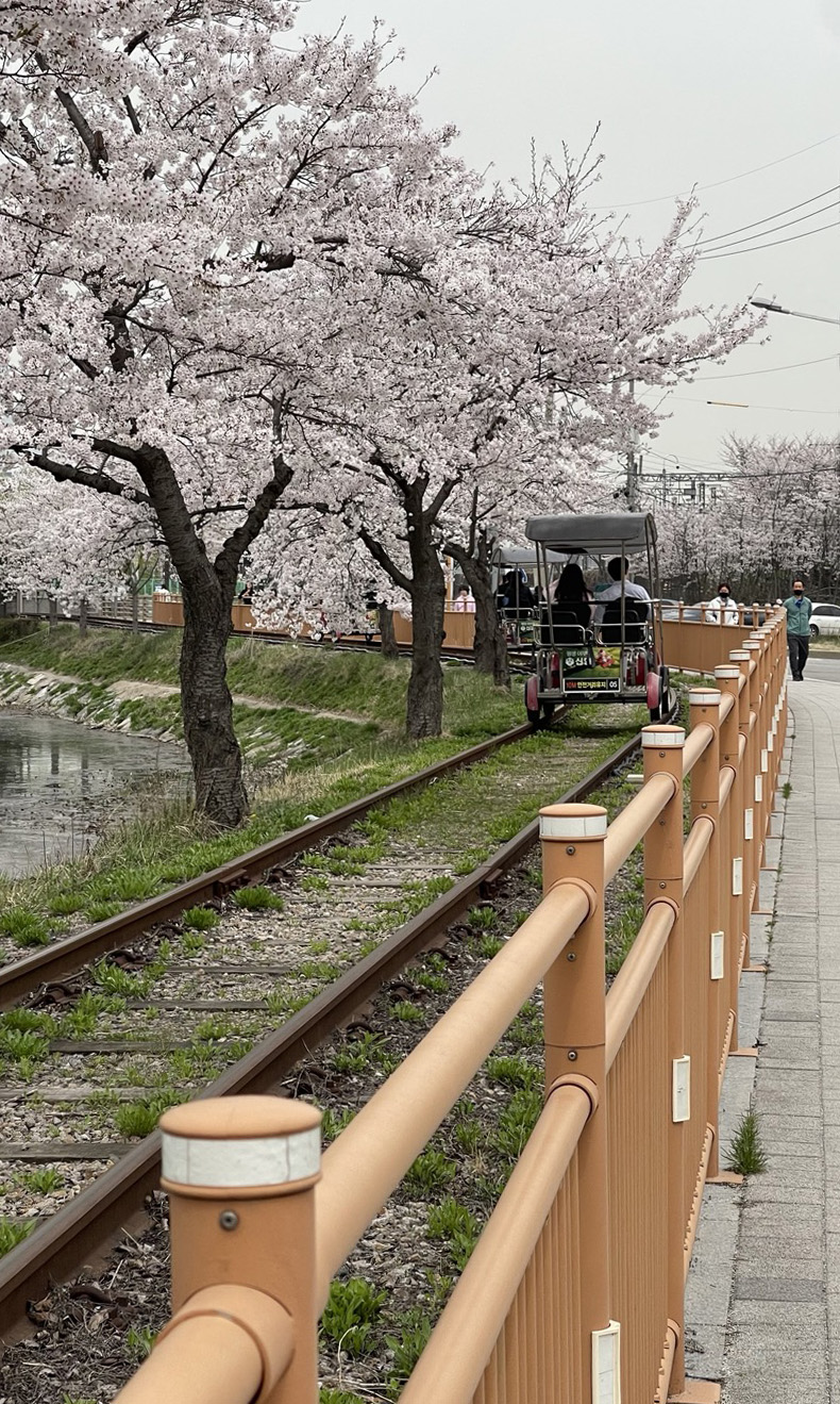 특히, 레일바이크 철길을 따라 만개해 있는 벚꽃길이 아주 낭만적인데요.