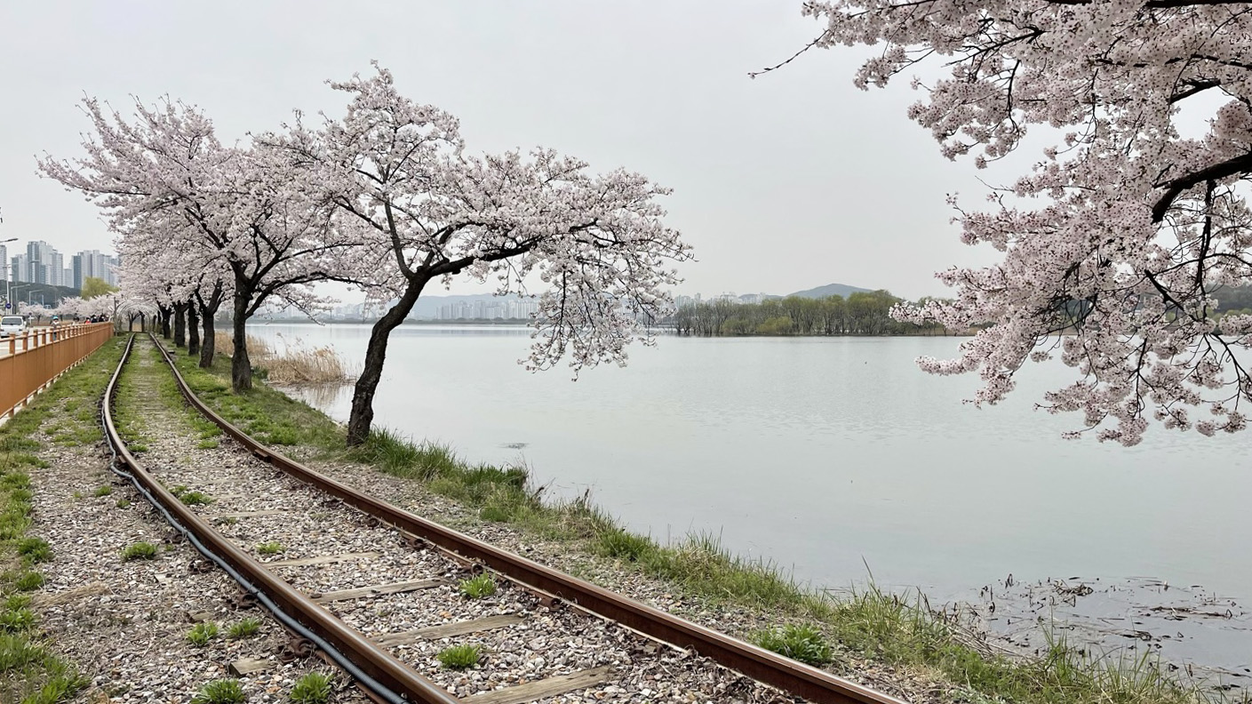 철길을 타라 활짝 피어있는 벚꽃이 너무 운치 있죠?^^