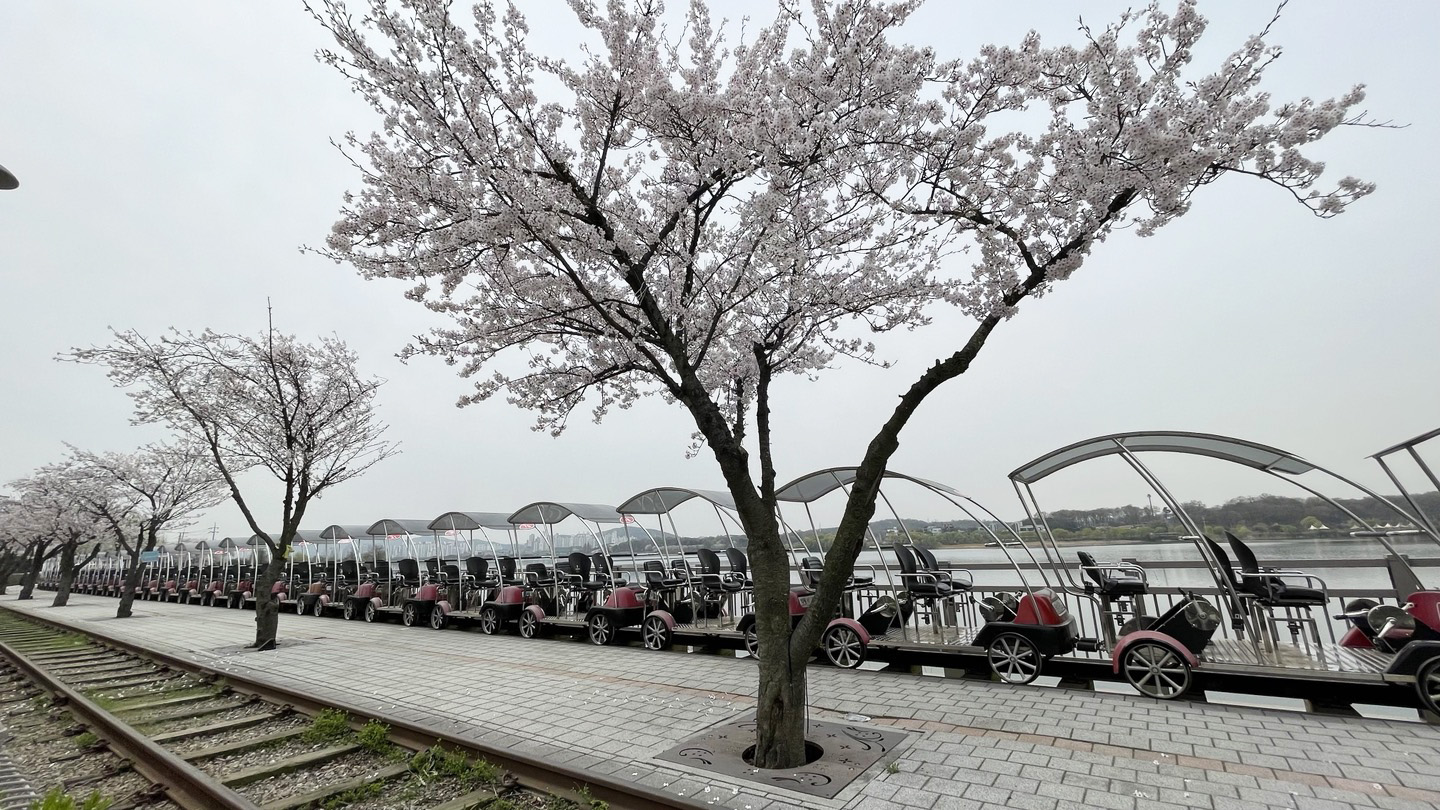 특히, 레일바이크 철길을 따라 만개해 있는 벚꽃길이 아주 낭만적인데요.