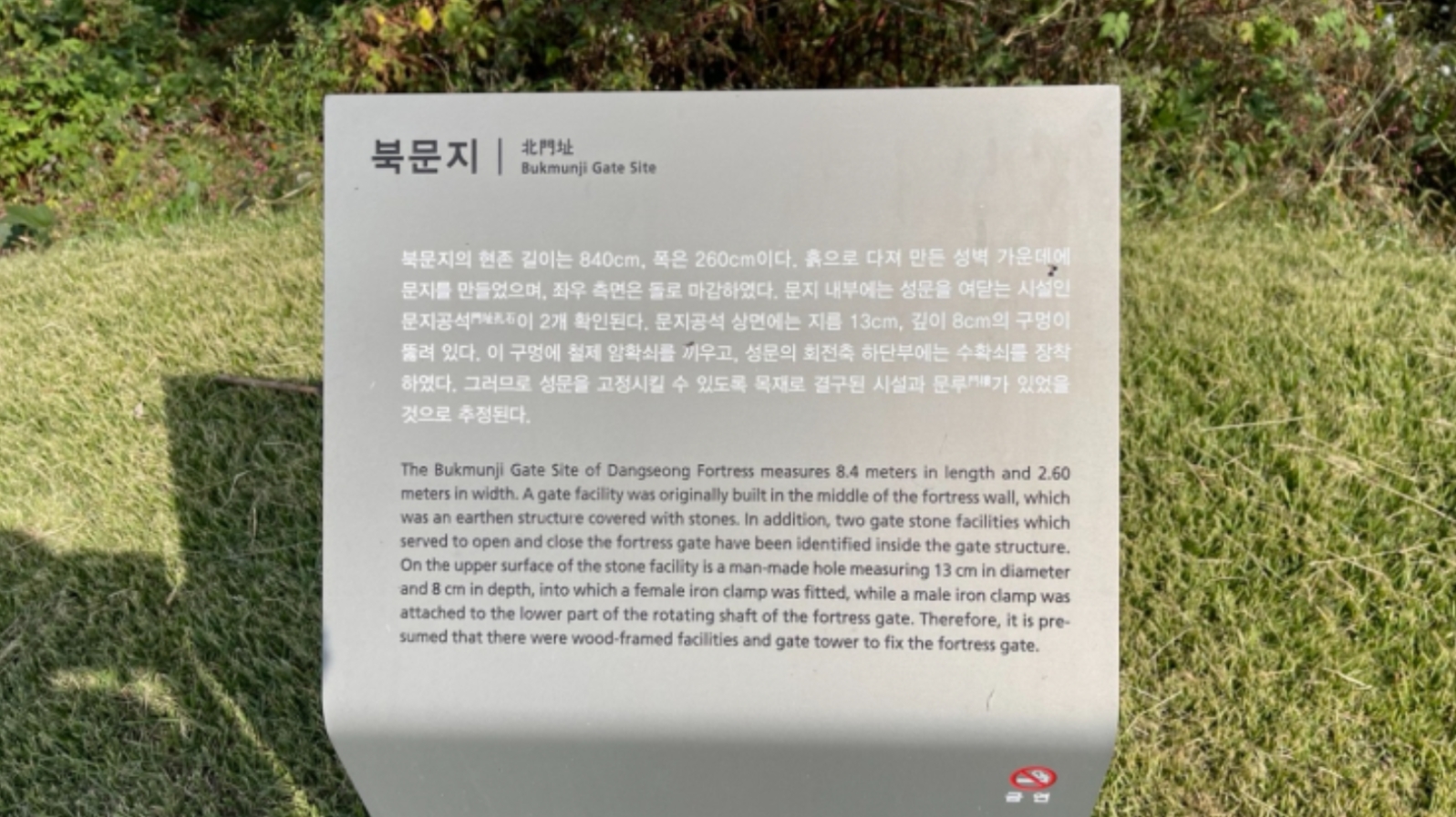 북문지에 도착했습니다. 문의 형태는 없고 자리만 남아 있습니다.