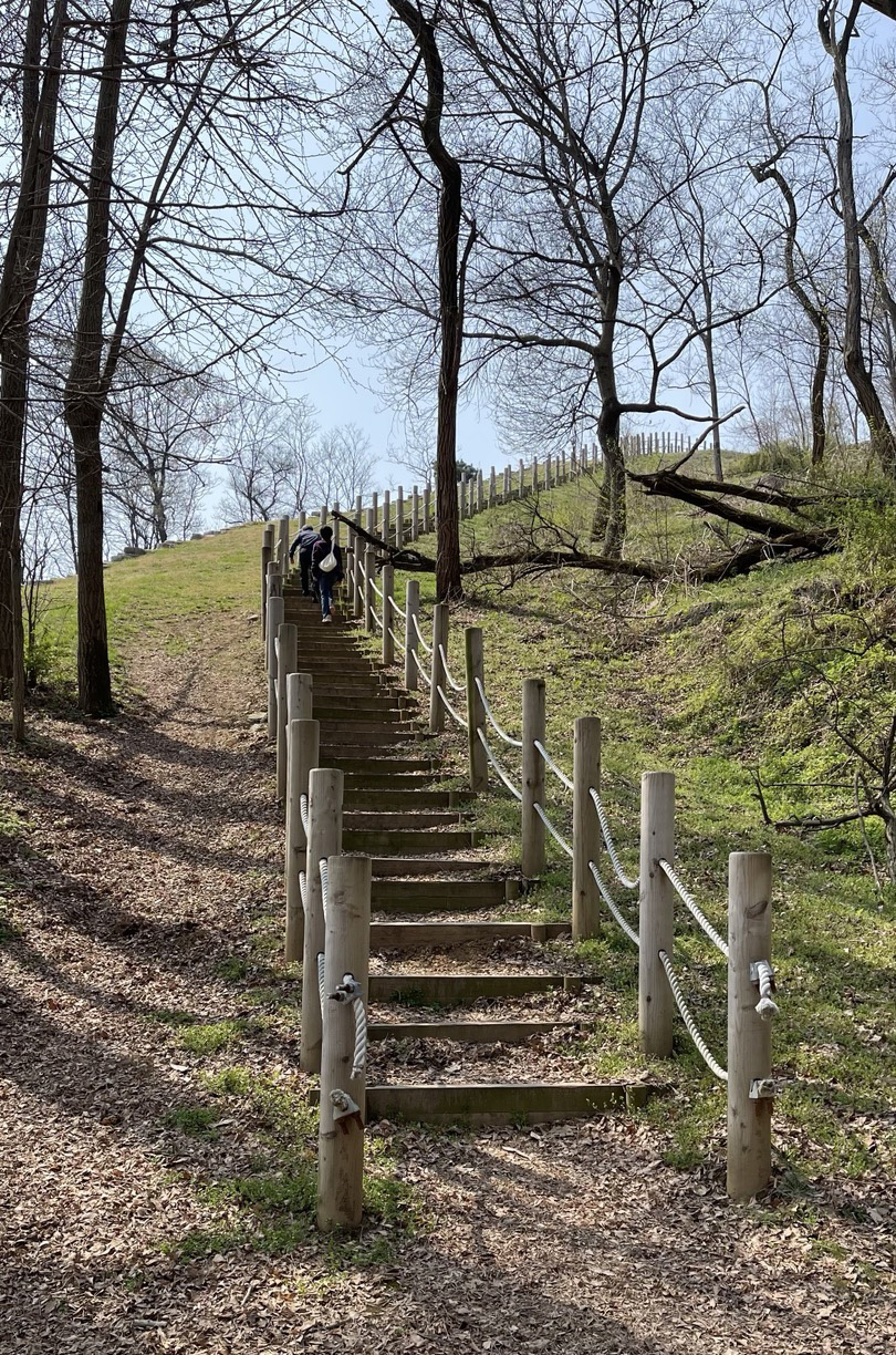 당성은 1차 성과 2차 성, 서문지, 망해루지, 북문지, 우물지 등으로 이루어져 있는데, 계단으로 올라가면 1차 성, 망해루지를 지나 북문지, 우물지를 돌아오는 코스입니다. 반대로 우물지를 먼저 들렀다가 이 계단으로 내려와도 됩니다..