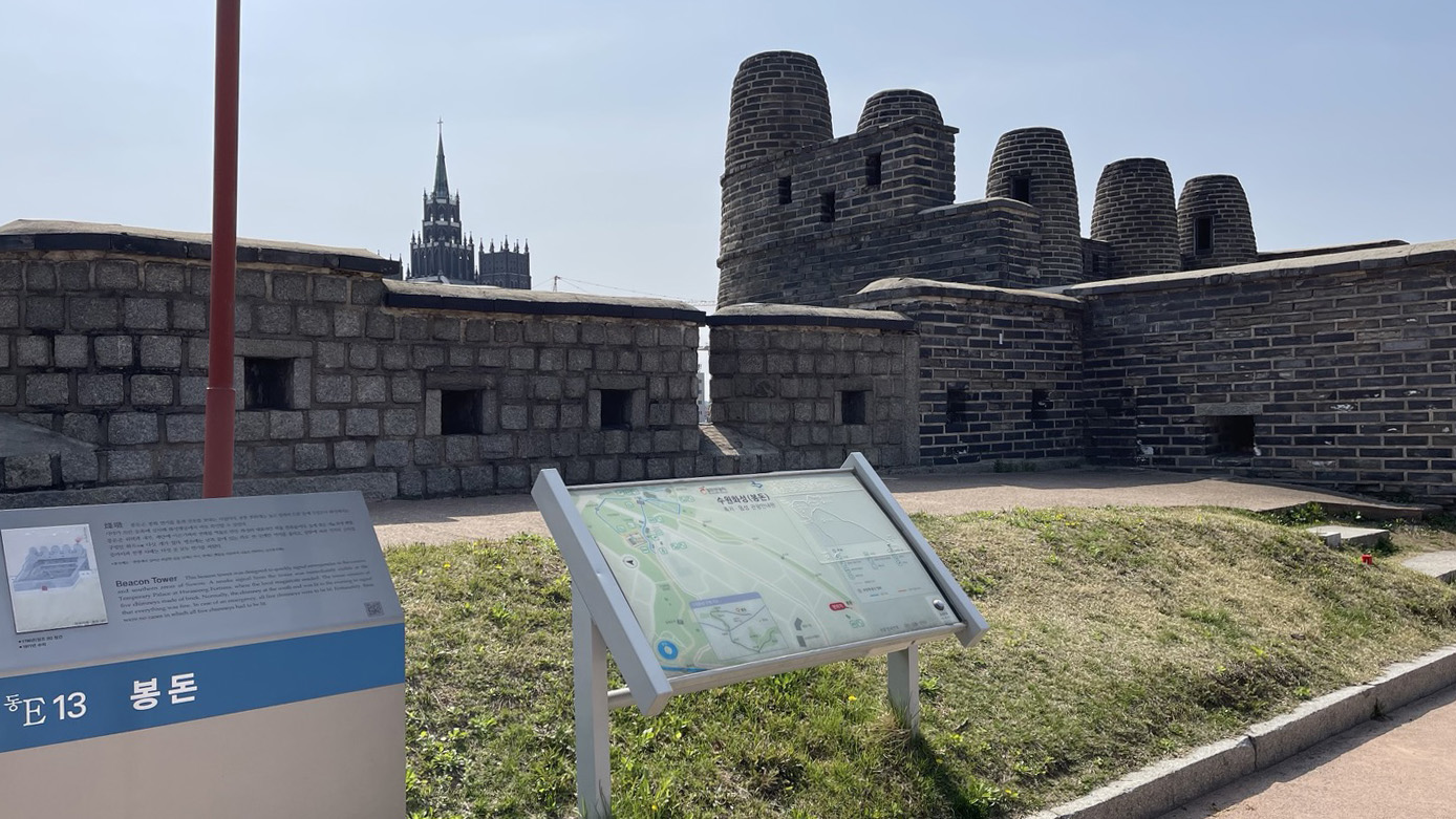 길을 건너면 성벽길이 다시 이어집니다. 보수 중인지 성벽 주변으로 펜스가 설치되어 있어서 계단을 이용했습니다.