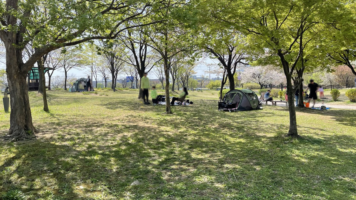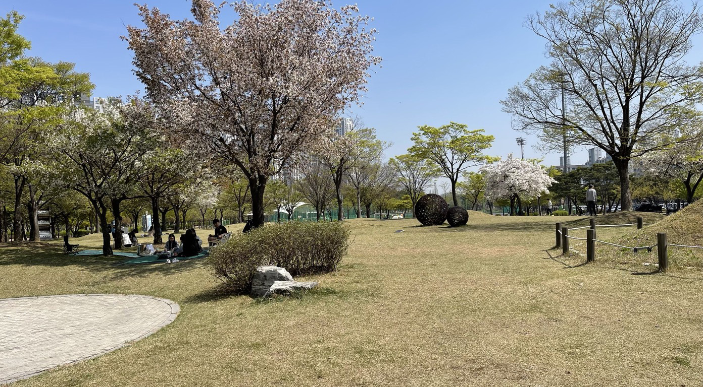 벚나무 그늘 아래 돗자리 펴고 담소를 나누는 사람들 모습에서도 봄이 느껴지네요.ㅎ