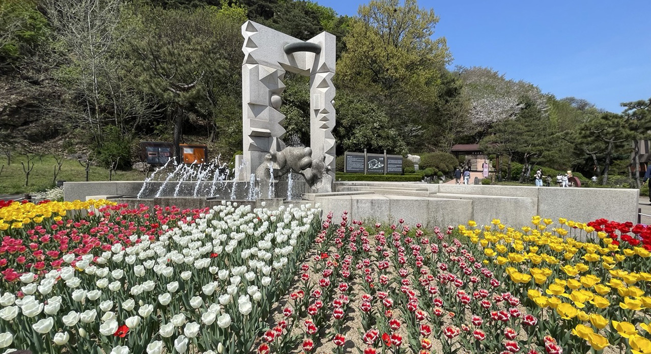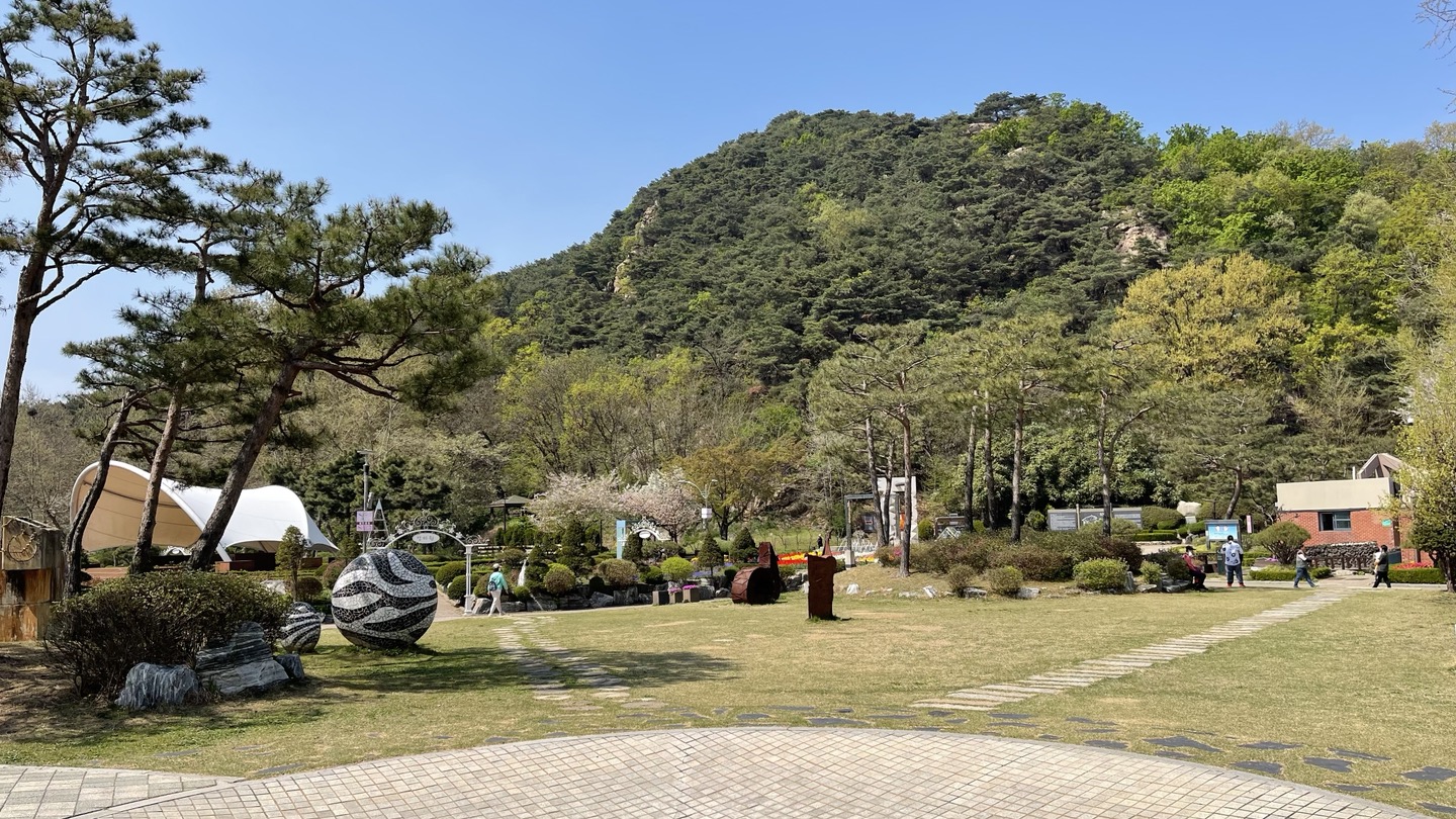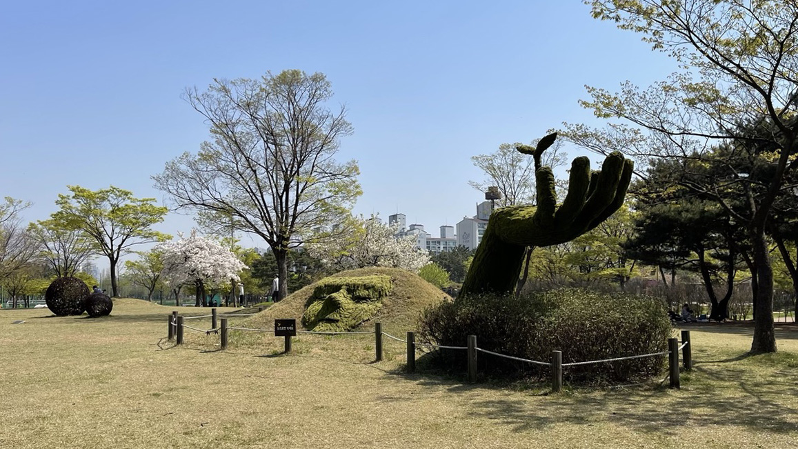 옥구공원 중앙 잔디밭에는 다양한 조형물과 조각작품 등이 있어 눈도 즐겁습니다.