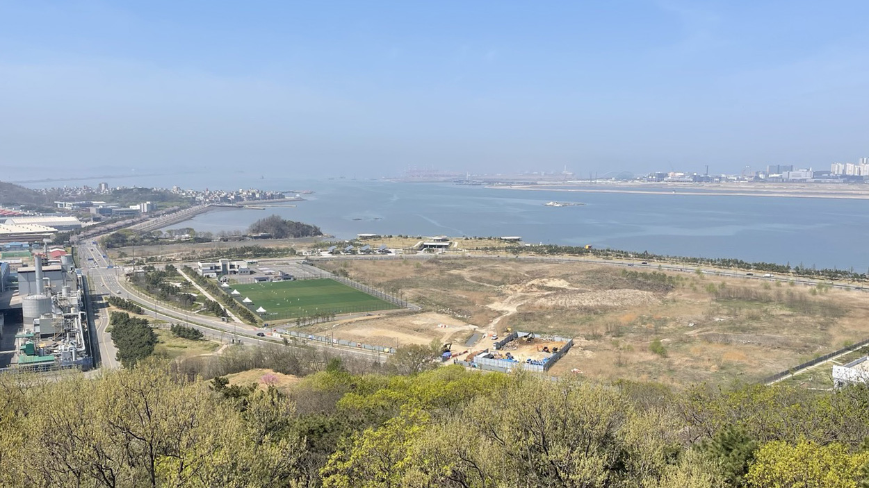 인천 방향으로는 바다 건너 인천신항의 모습이 어슴프레 보입니다.
