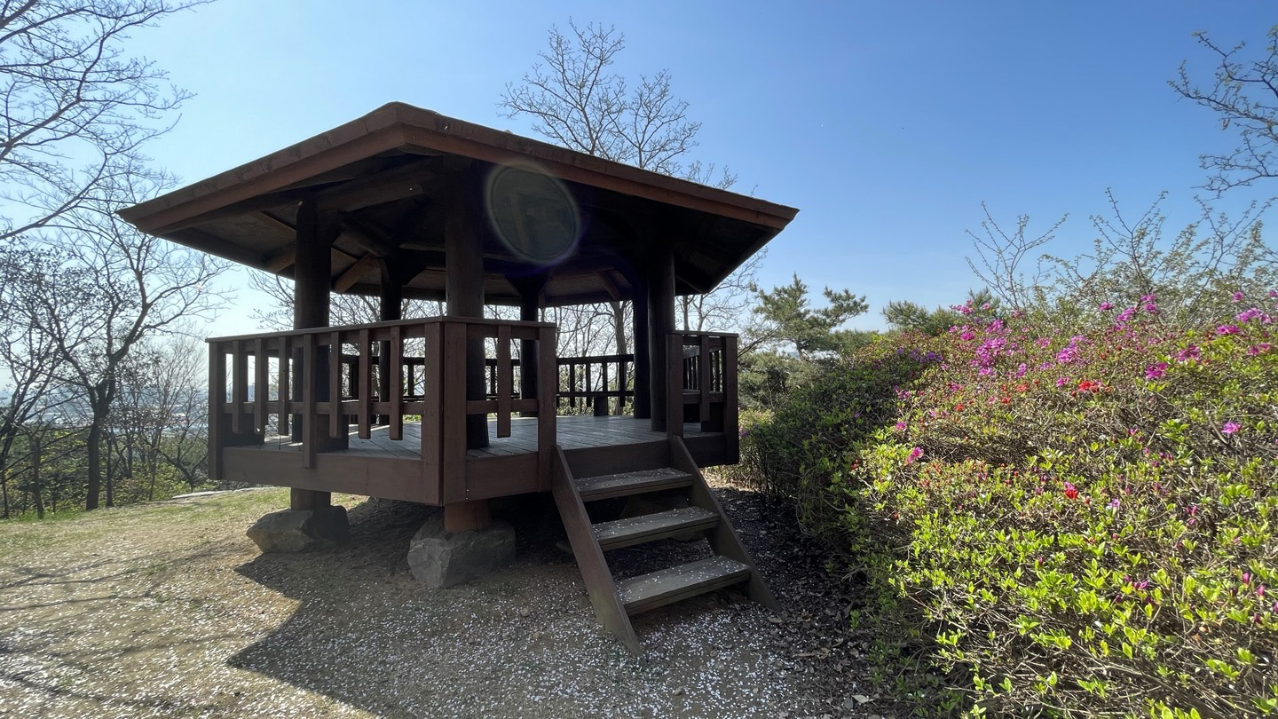 옥구산 정상은 바위가 많아요. 그 위에 옥구정이 세워져 있습니다..