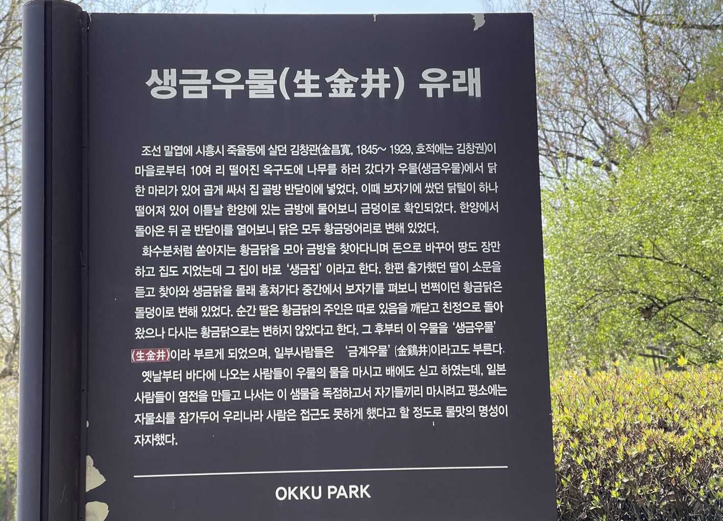 생금우물이라는 우물이 있는데 보수중인지 막혀 있어요.