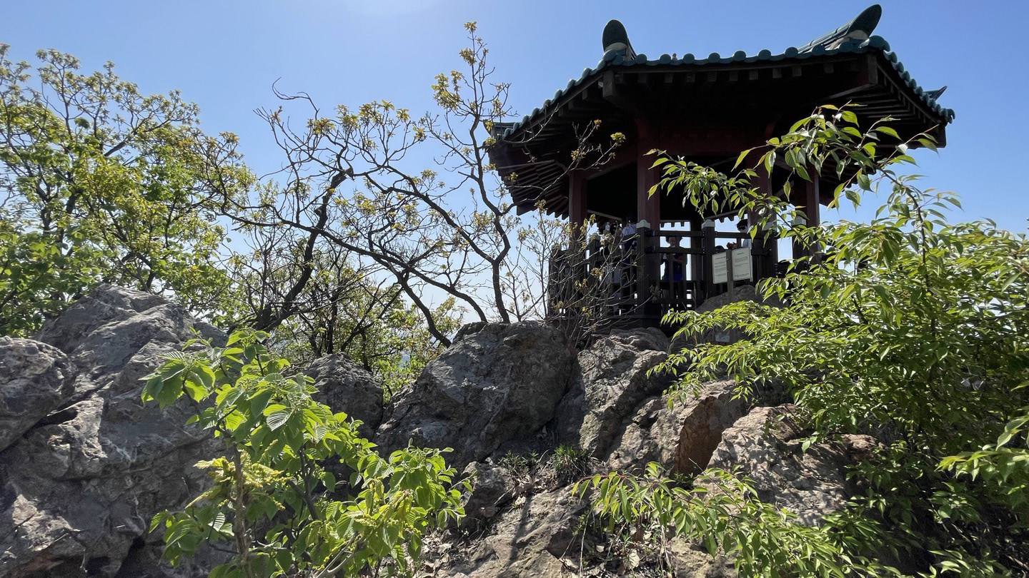옥구산 정상은 바위가 많아요. 그 위에 옥구정이 세워져 있습니다..