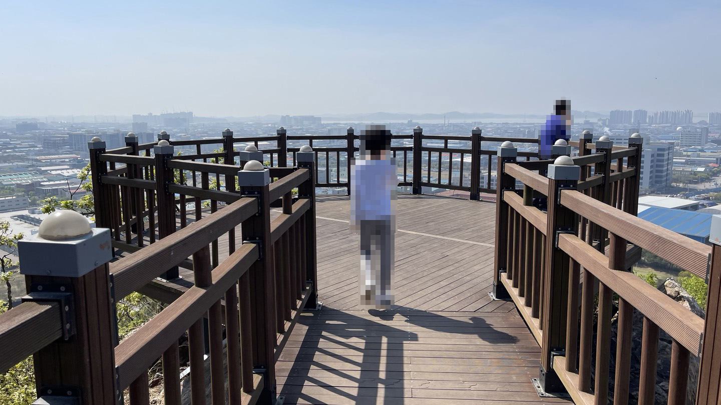 곰솔누리숲을 아이와 같이 온전히 다 걷기에는 편도 3.4km의 거리가 부담스러워서 적당히 걷다가 옥구공원으로 다시 되돌아 왔어요. 먼저 다녀온 옥구산과 옥구정이 보이네요.