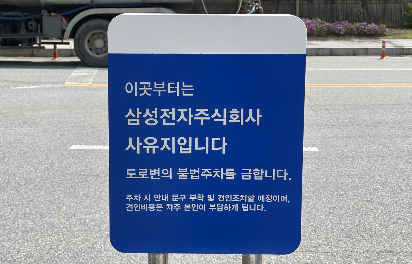 삼성교~삼성중앙교 구간을 산책했는데요, 이 주변은 삼성전기주식회사의 사유지라 도로변의 불법주차를 금하고 있습니다.