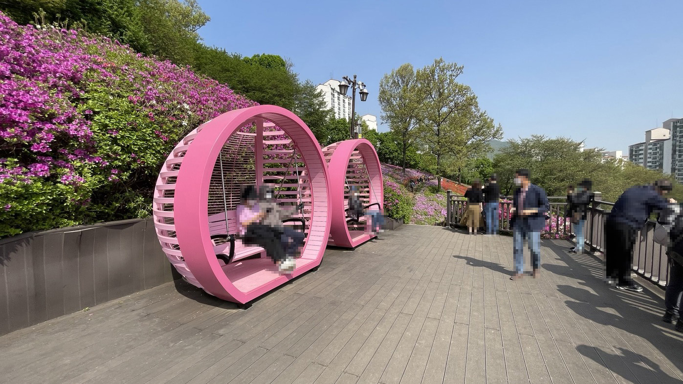 중앙(그네) 전망대는 철쭉동산 수십만 그루의 철쭉 전체를 조망할 수 있는 중앙 전망대로 철쭉의 분홍바다를 느낄 수 있는 메인 전망대입니다.