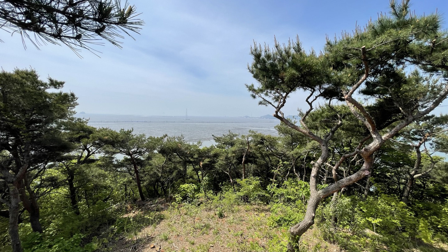 전망대 주변에 소나무가 많아서 시야가 좀 가려지기는 하지만 바다를 볼 수 있어 경치는 좋은 편입니다.
