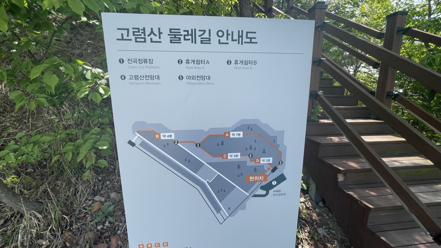 고렴산 주변으로 수변공원이 조성되어 있어요. 정상 전망대까지 10분 정도면 올라갈 수 있는 가벼운 코스의 둘레길입니다.