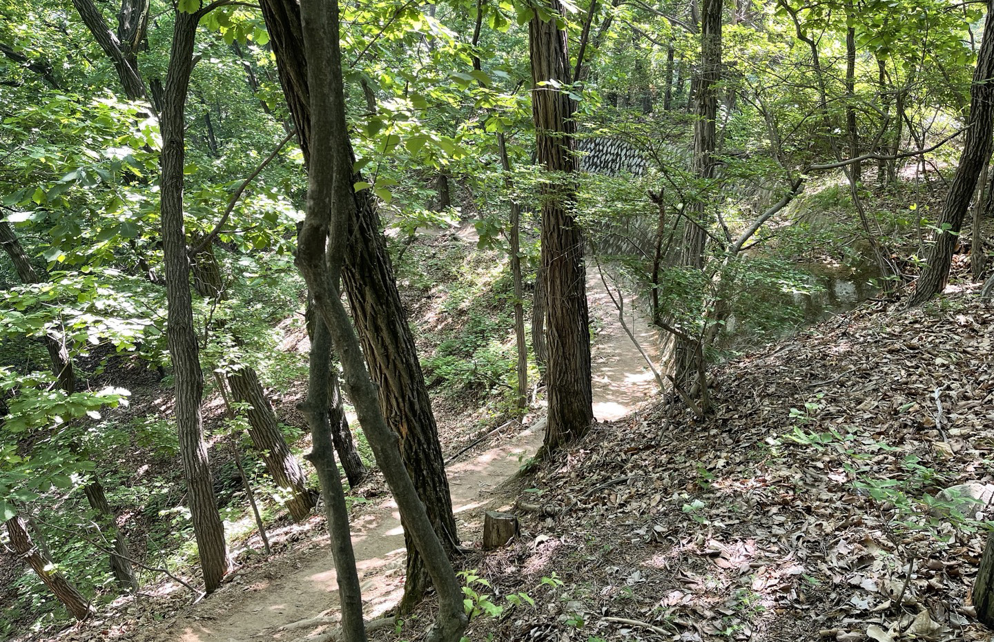 올라가다 보면 중간에 철문이 나와요. 철문을 통과하면 무봉산 둘레길이 이어집니다.