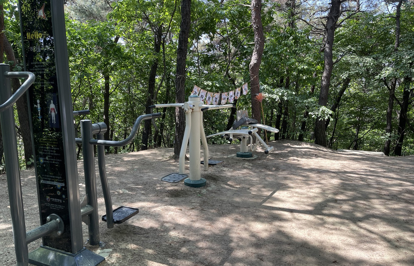 400m쯤 올라가면 봉우리 같은 곳이 나오고 운동기구가 설치되어 있습니다.