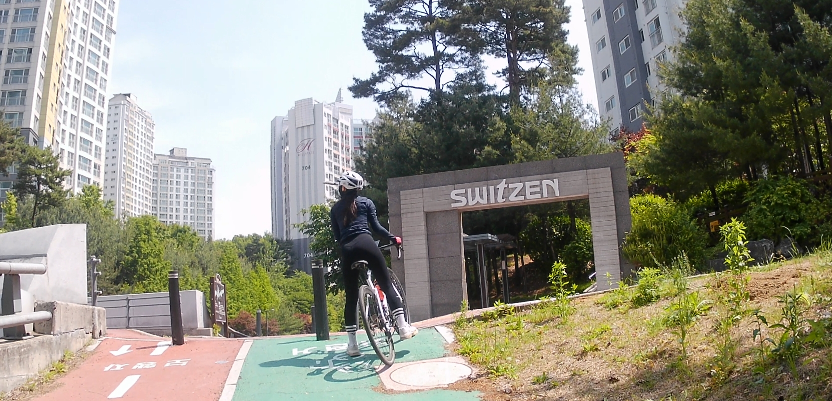 수원공군체력단련장 옆길부터 수원아이파크시티 아파트 단지가 있는 지역으로 접어들면 자전거 타기가 훨씬 수월해 집니다. 자전거도로와 보행로가 분리되어 있고 길고 넓게 조성되어 있습니다.