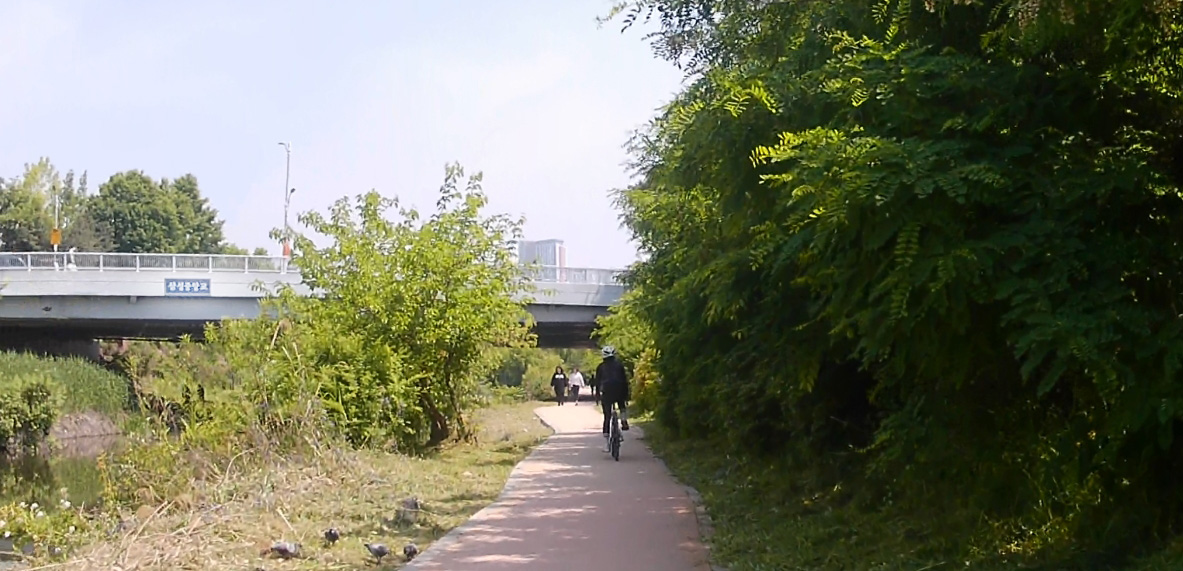 오목천역에서 고색역까지 이어지는 수인선하늘숲길을 지나 수원공군기지 옆으로 이어진 자전거도로를 따라가면 수원천을 만납니다. 수원천을 가로지른 후 세류사거리에서 덕영대로를 따라 가다가 원천리천 수변길로 진입하고 하천을 따라 쭉 가다보면 광교호수공원이 있는 원천호수까지 갈 수 있습니다.