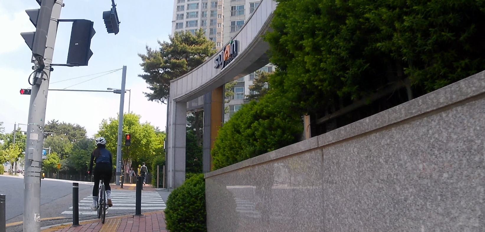하지만, 수원아이파크시티 아파트 단지쪽은 상가 입구가 있는 쪽이라 지나가는 사람들이 많습니다. 길 건너편에 있는 벽산한성아파트쪽이 상가가 없어서 자전거를 타고 가기에 훨씬 좋습니다.