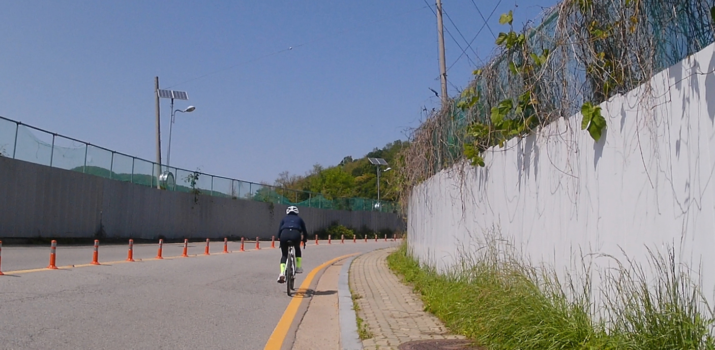 자전거도로가 없어서 어쩔 수 없이 공도로 달렸는데 뒤에서 차량들이 들어올 때는 좀 무서웠어요. 전국에 자전거도로가 깔리는 날이 왔으면 좋겠습니다.^^;