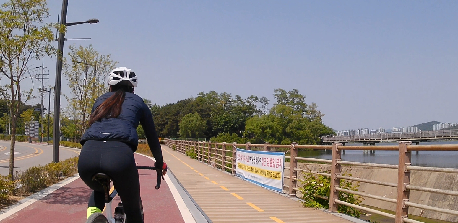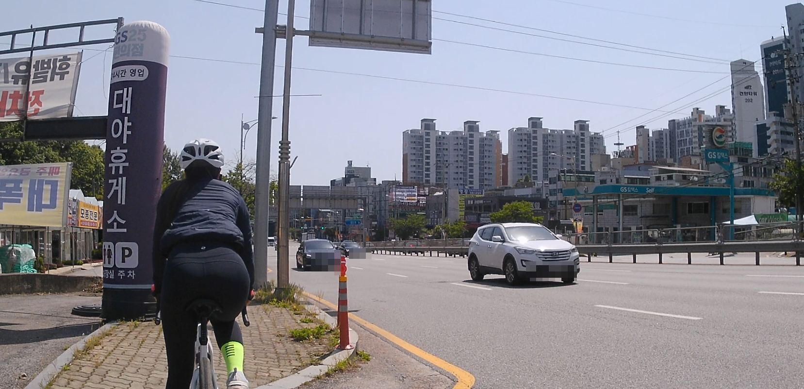 자전거도로가 없어서 어쩔 수 없이 공도로 달렸는데 뒤에서 차량들이 들어올 때는 좀 무서웠어요. 전국에 자전거도로가 깔리는 날이 왔으면 좋겠습니다.^^;