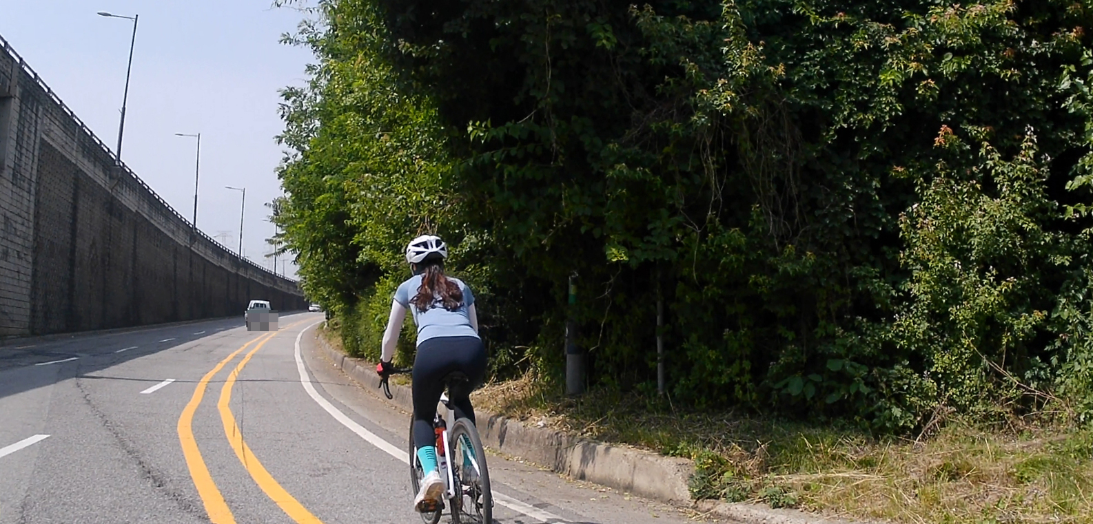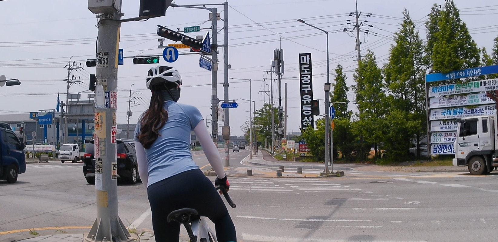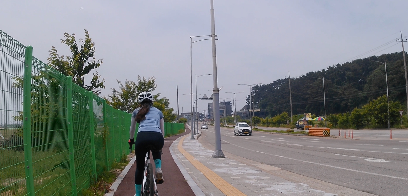 마도공단로부터 일부 구간은 자전거도로가 없습니다. 공도를 타기에는 차량들도 많고 무서워서 인도를 이용했는데요, 인도 중간에 가로수들이 심어져 있어서 이동이 수월하지는 않았습니다.