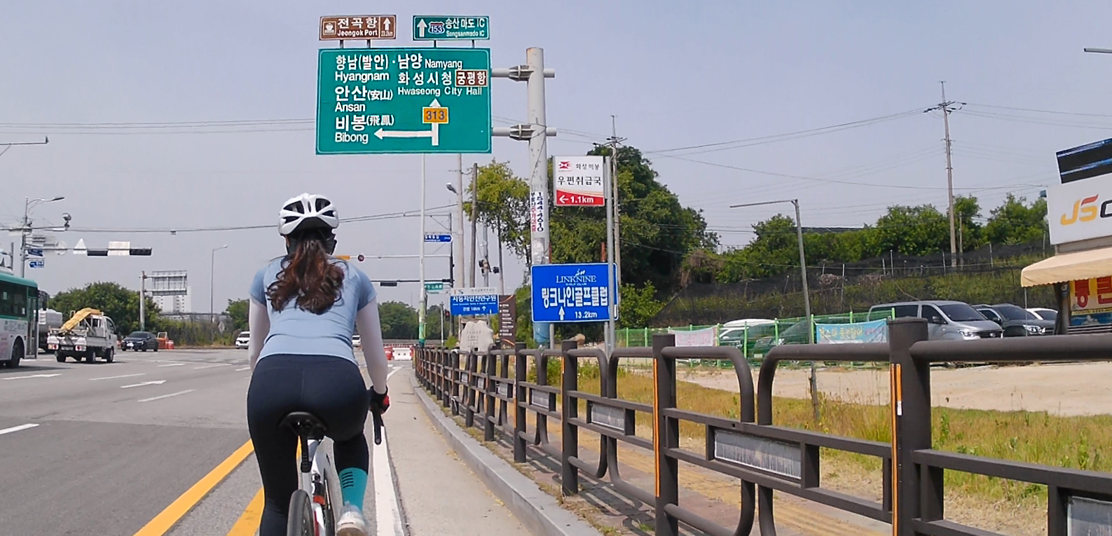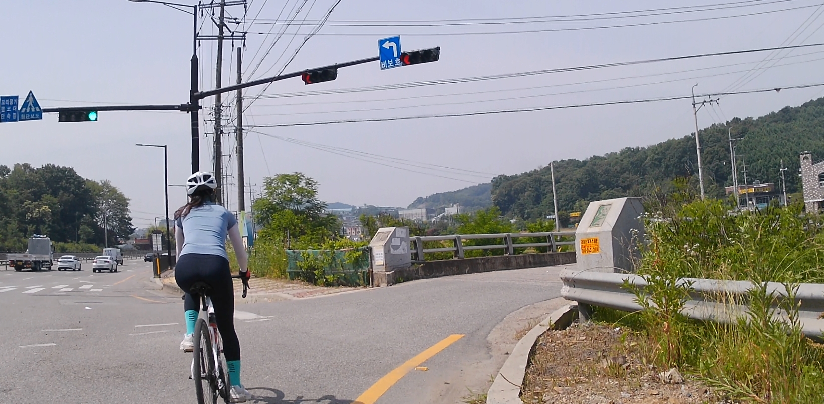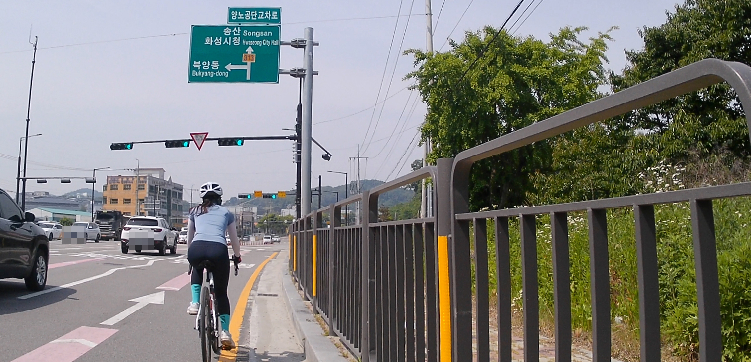 숙곡교에서 화성로로 진입하여 공도를 타고 갔는데요. 화성로는 일부 구간을 제외하고는 도로 옆 갓길이 넓은 편이에요. 하지만 자린이를 벗어나지 못하고 있는 저로써는 많이 긴장되는 코스였습니다.