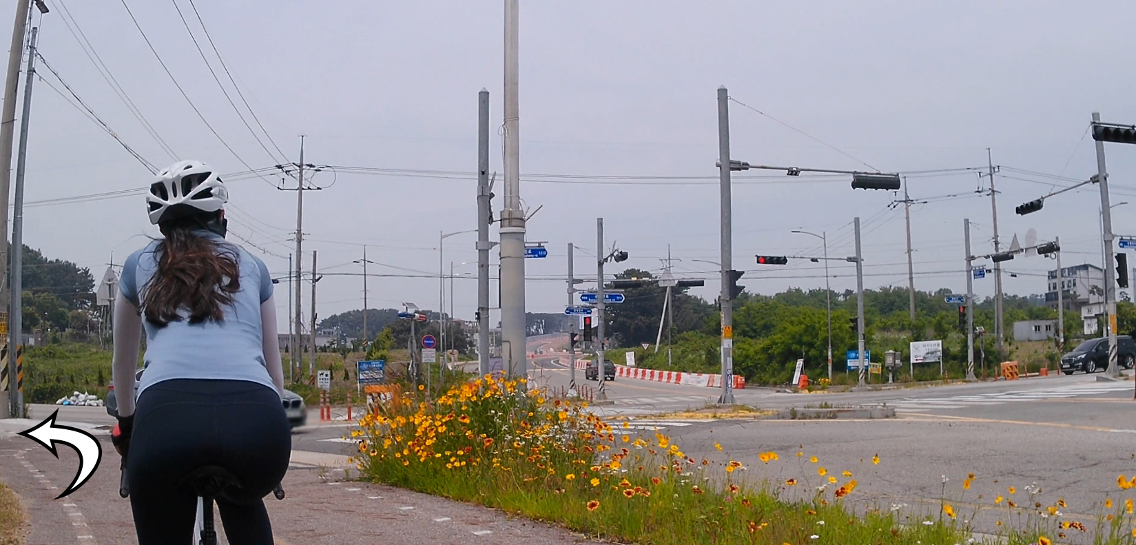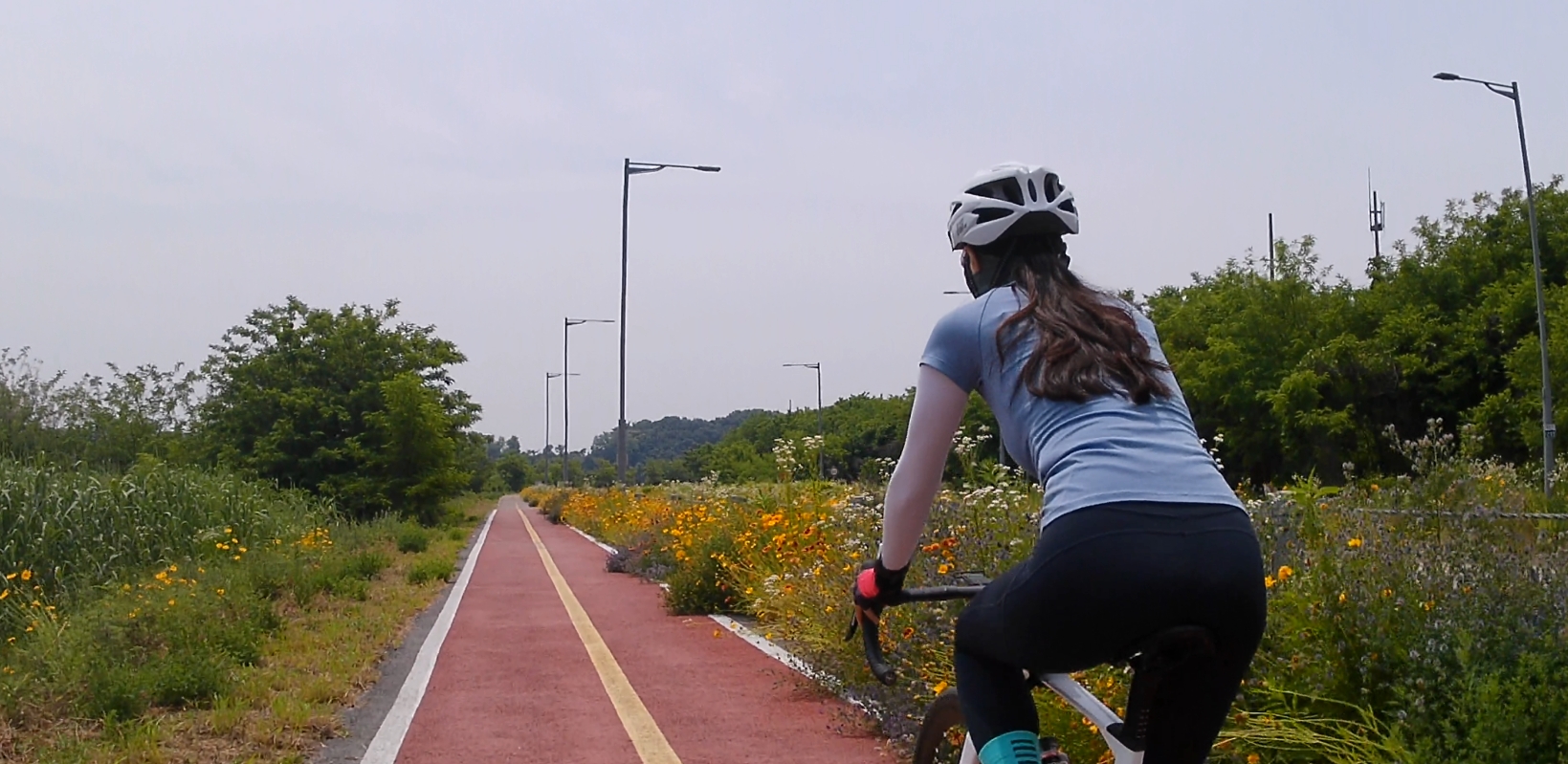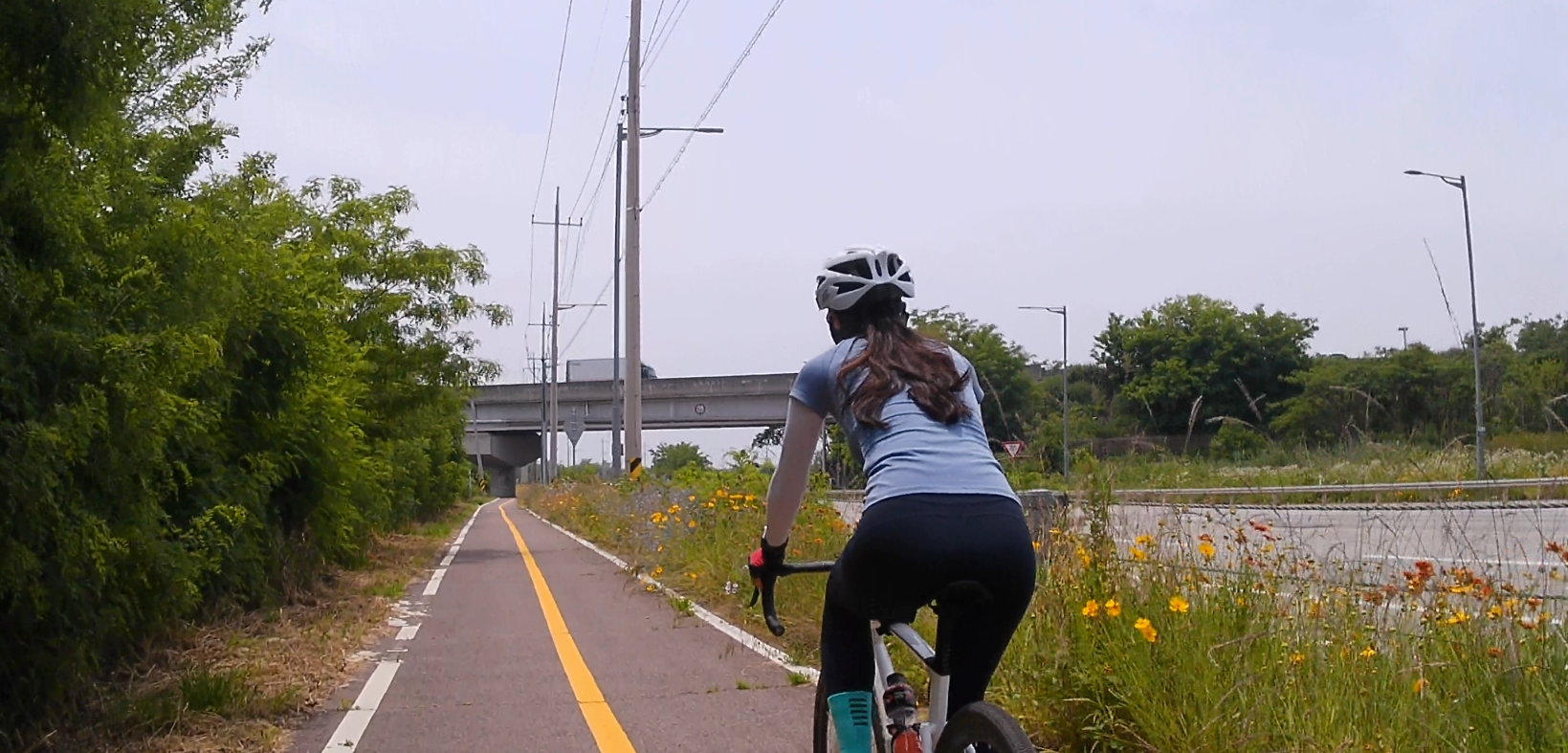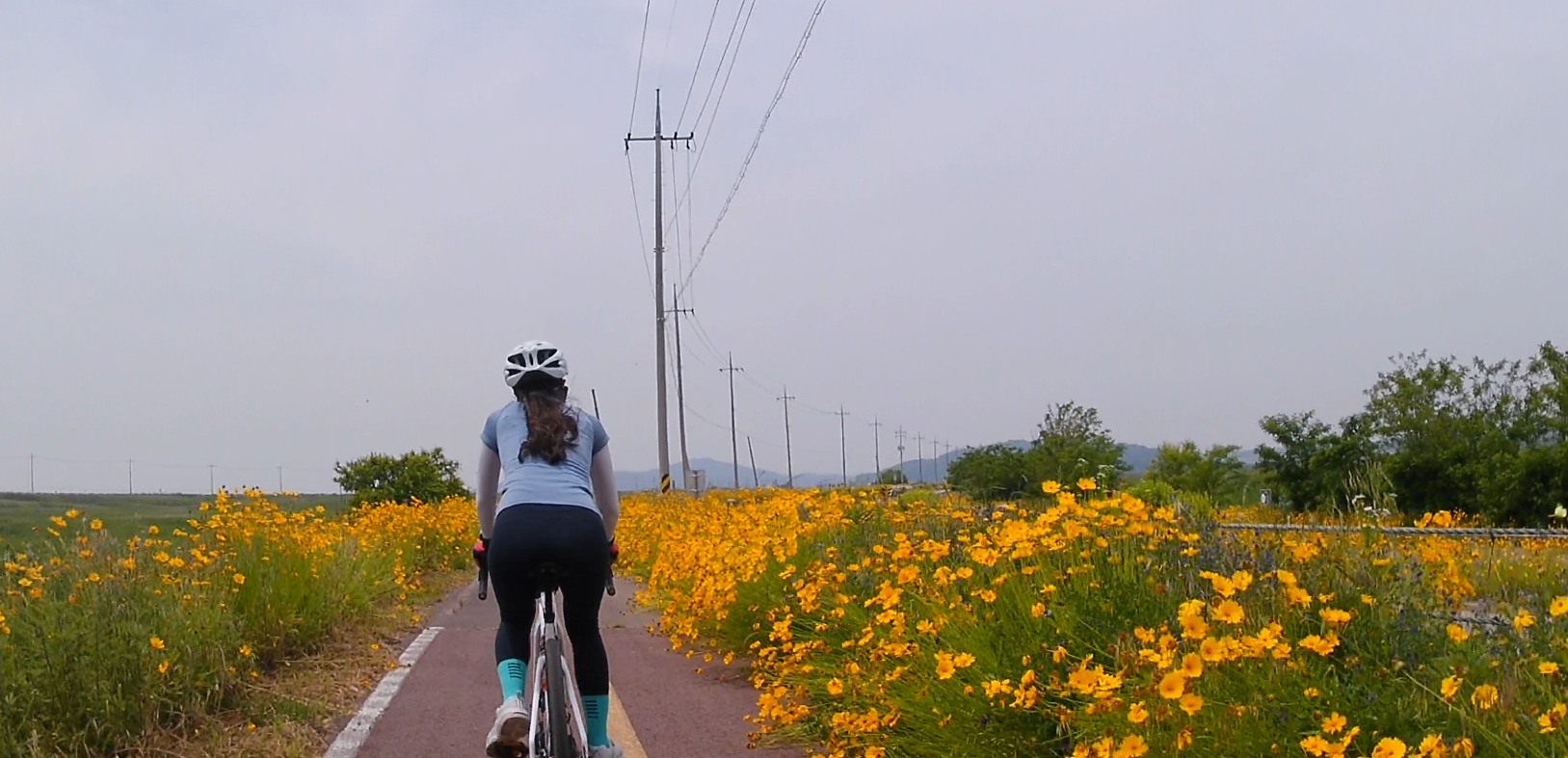 자전거도로 옆으로 노랗게 핀 금계국과 들꽃들이 끝도 없이 이어져서 달리는 내내 이쁜 풍경을 볼 수 있답니다.^^