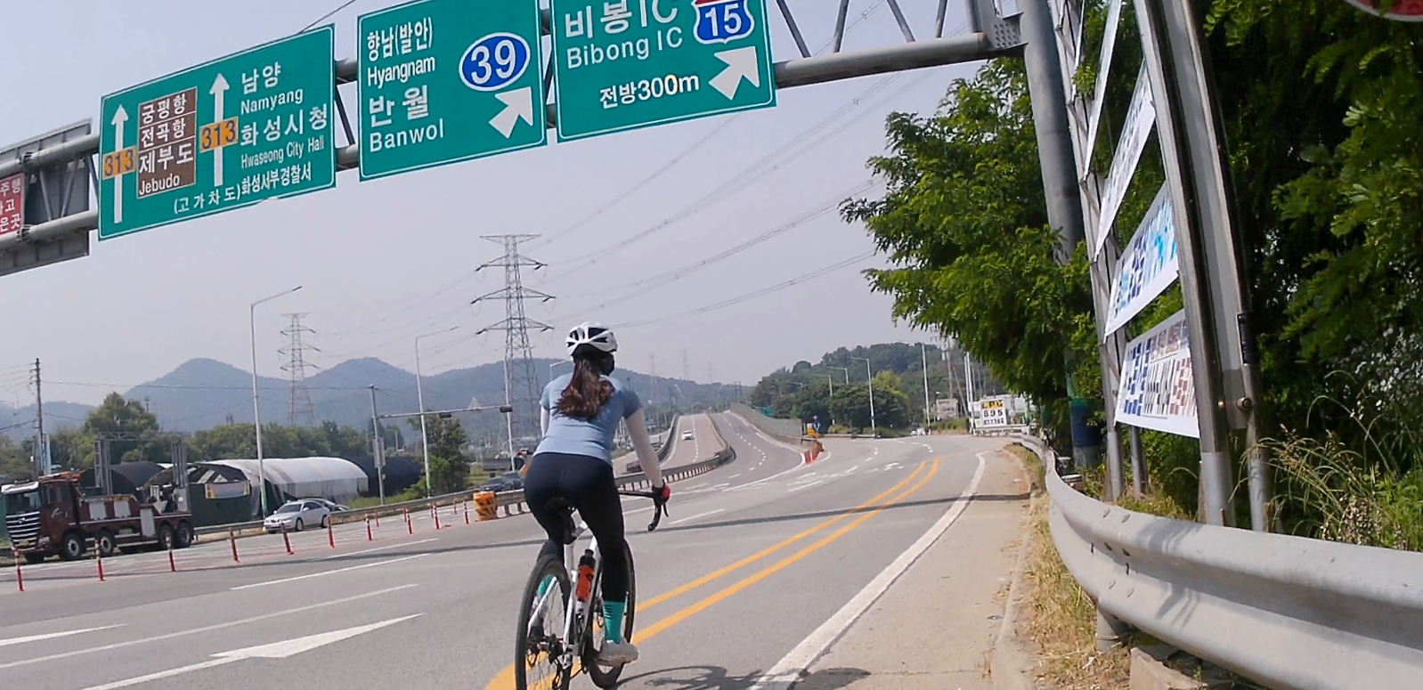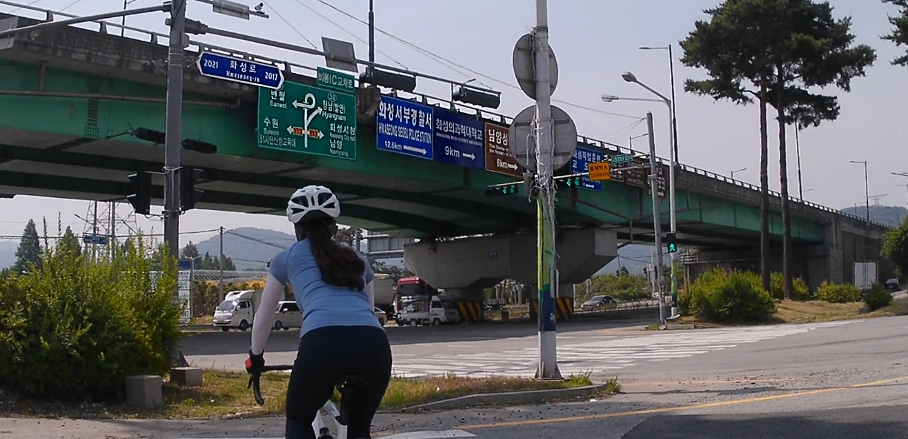 숙곡교에서 화성로로 진입하여 공도를 타고 갔는데요. 화성로는 일부 구간을 제외하고는 도로 옆 갓길이 넓은 편이에요. 하지만 자린이를 벗어나지 못하고 있는 저로써는 많이 긴장되는 코스였습니다.