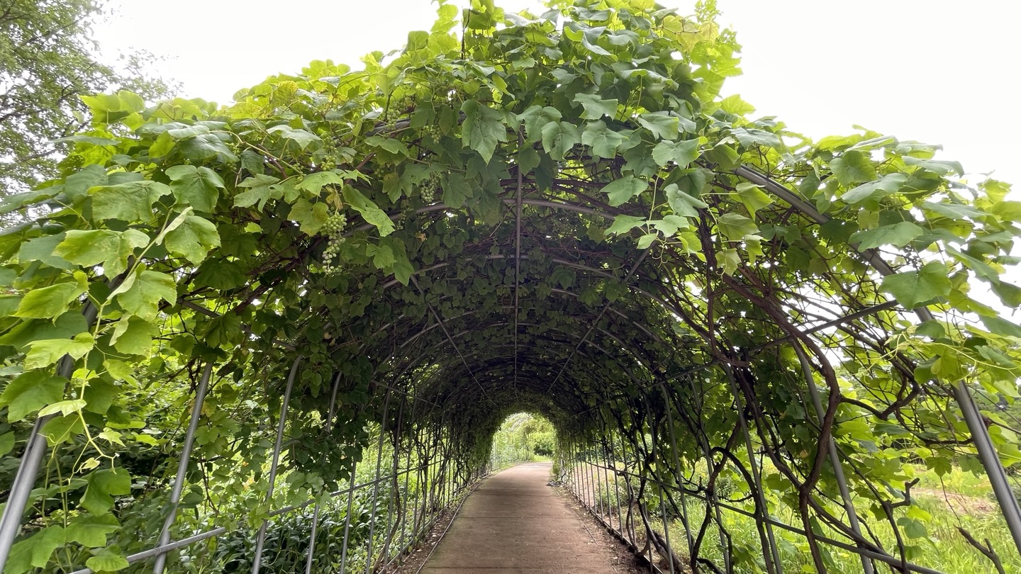 식물덩굴원에는 탐스러운 포도알이 탱글탱글 자라나고 있습니다.